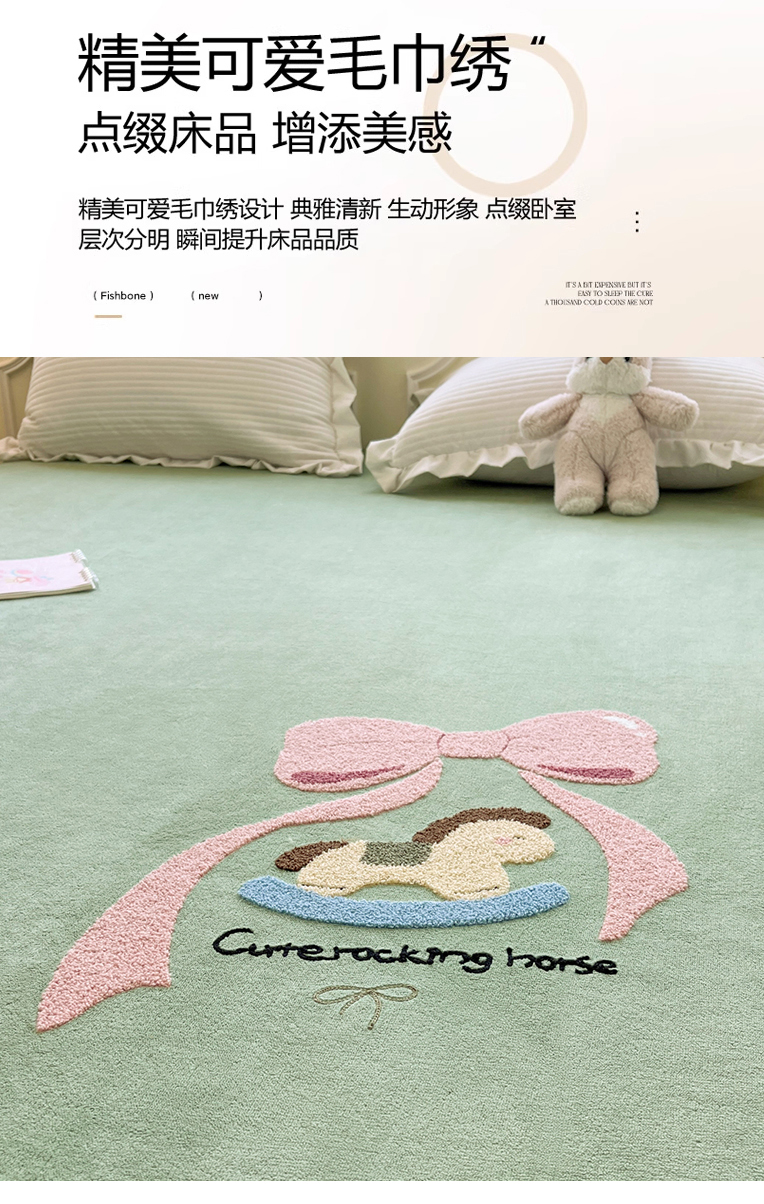 商品名称:子钦家纺 2025秋冬新款加厚牛奶绒毛巾绣床笠 小马蝴蝶结-豆绿