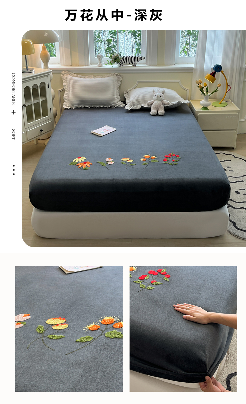 (总)子钦家纺 2023新款赫本风棉加绒牛奶绒四件套,爱心,斑纹,豹纹,蝴蝶结,可爱熊,奶牛,山茶花,神秘花园,素描花,田园风情