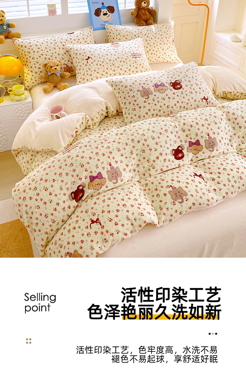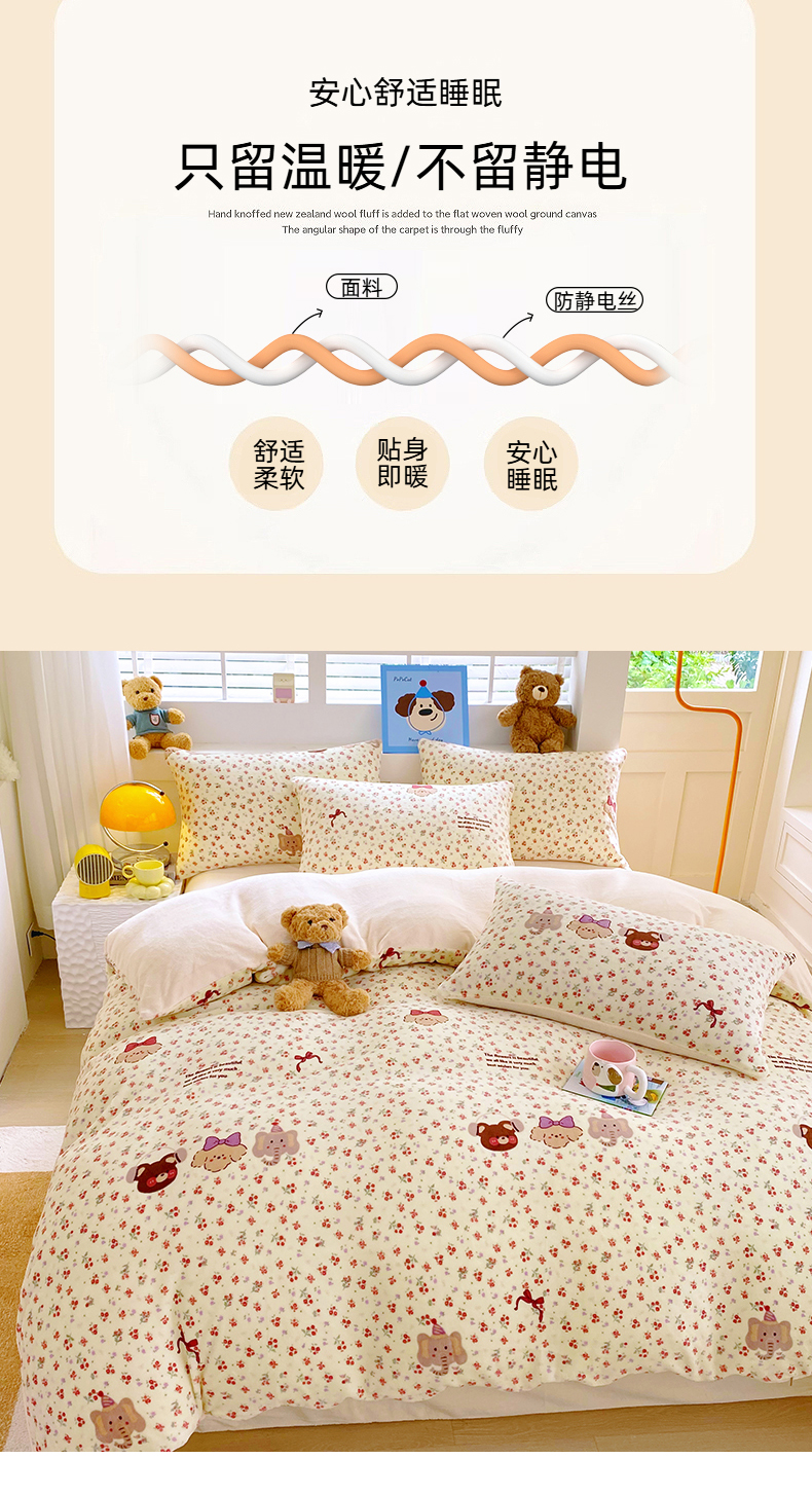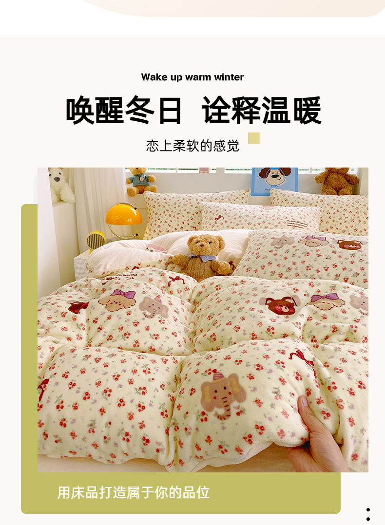 当前位置: 91家纺网 > 商品网购 > 床品套件 > 四件套 > 牛奶绒四件套 > YYDS网供 2025新款ins风牛奶绒四件套萌趣卡通三件套花卉单被套秋冬软fufu防静电 动物乐园