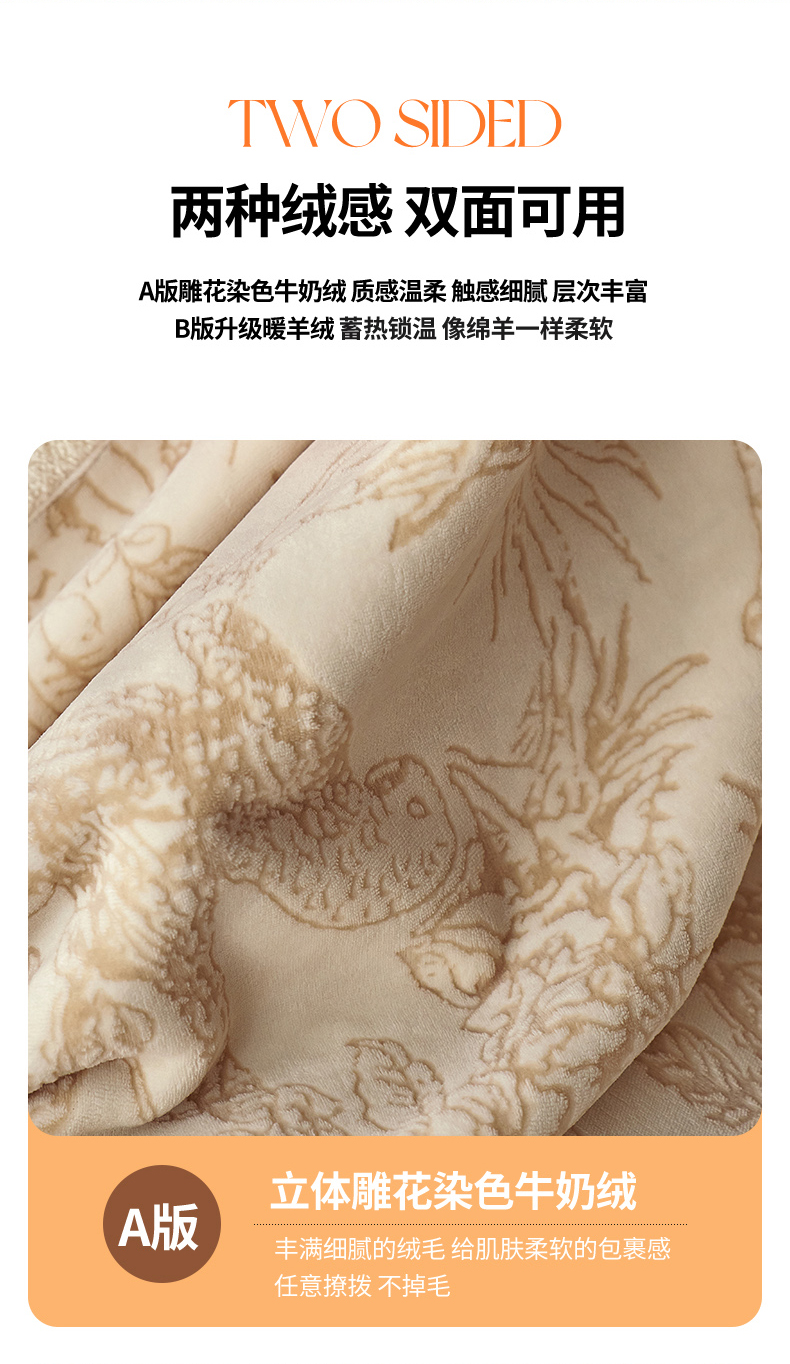 商品名称:宜代光年 2025新款牛奶绒雕花复合毛毯系列 丛林绒毯-粉