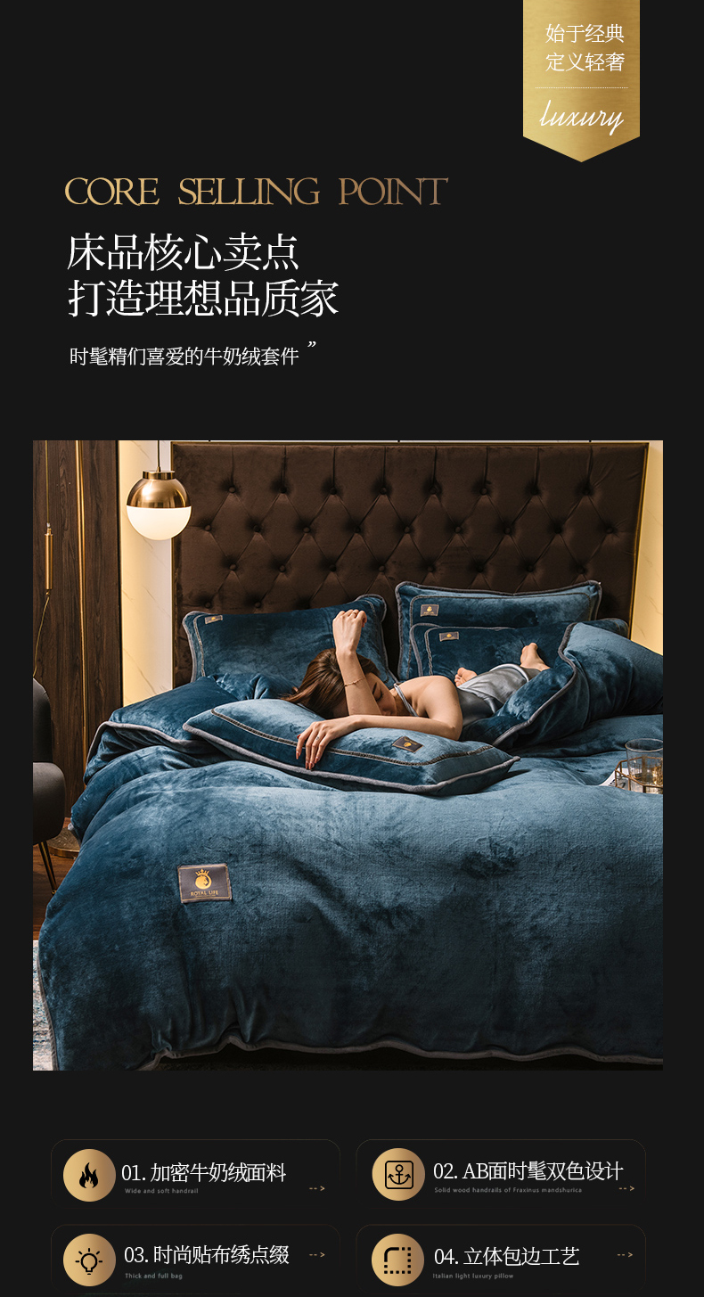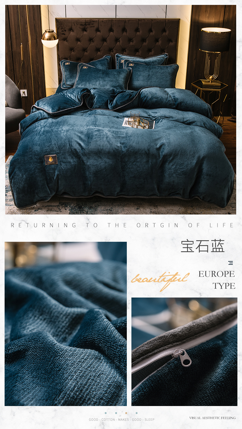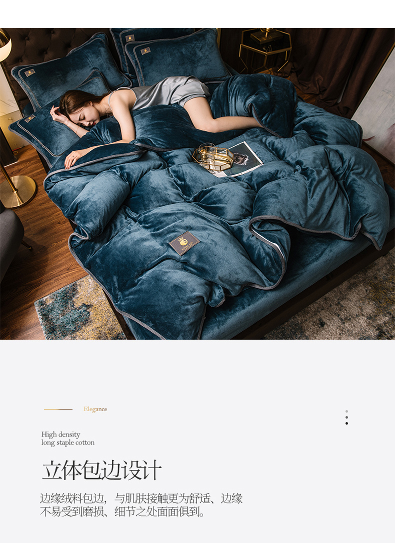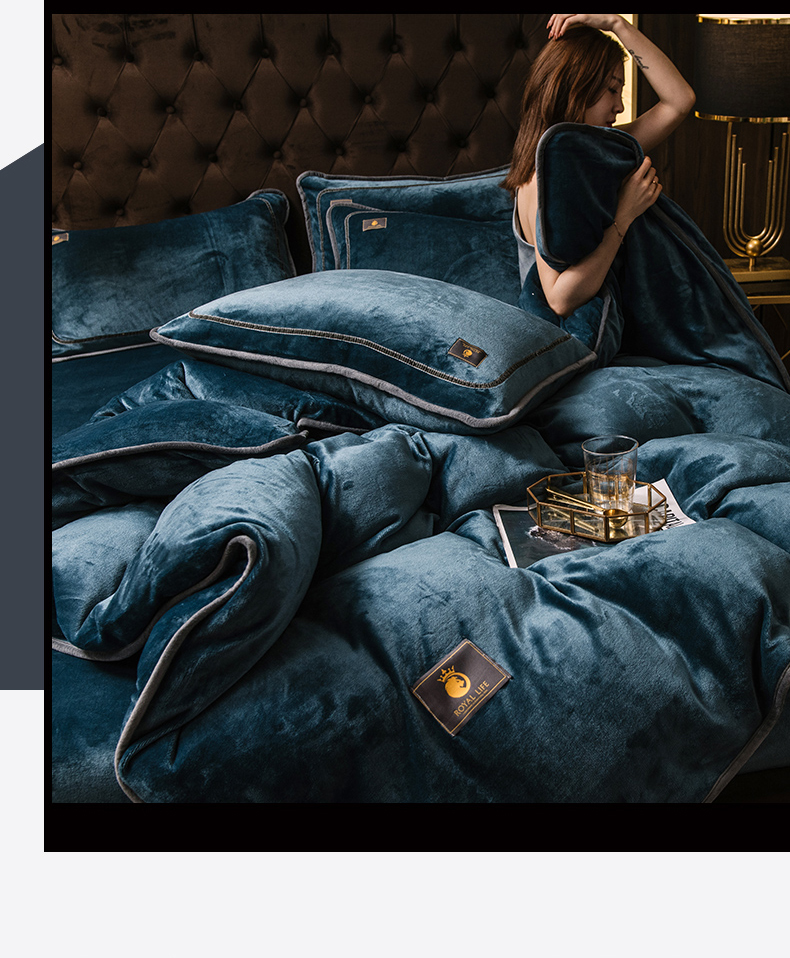 商品名称:宜代光年 2025新款加厚保暖纯色牛奶绒黑金四件套系列 宝石蓝