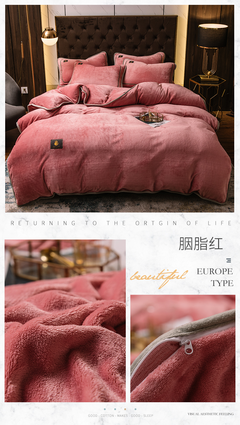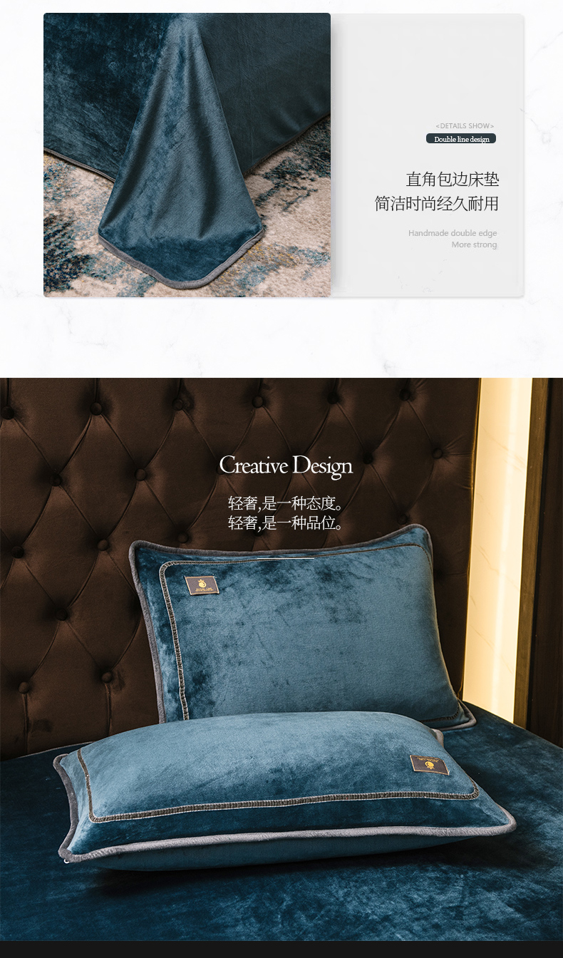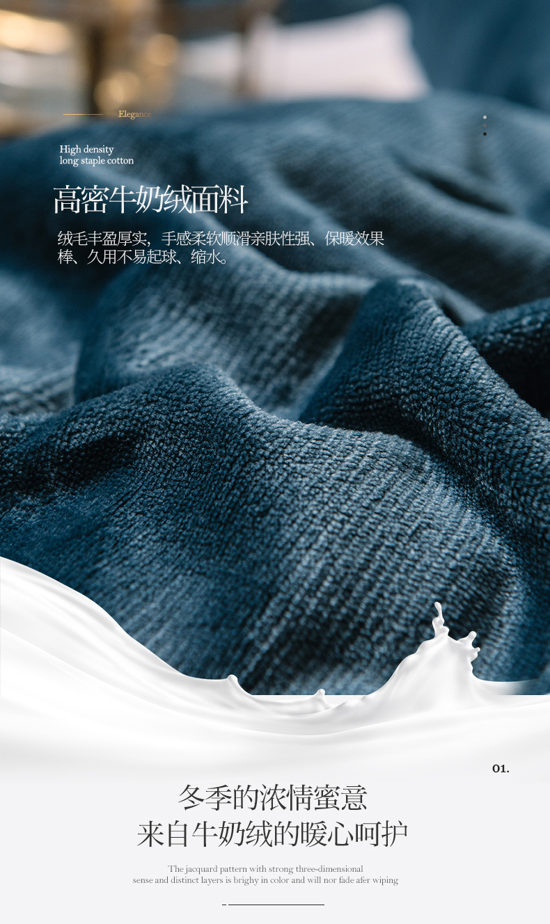 商品名称:宜代光年 2025新款加厚保暖纯色牛奶绒黑金四件套系列 宝石蓝