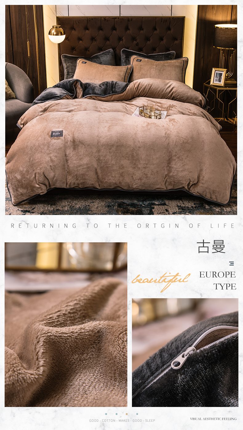 宜代光年 2025新款加厚保暖纯色牛奶绒黑金四件套系列 宝石蓝
