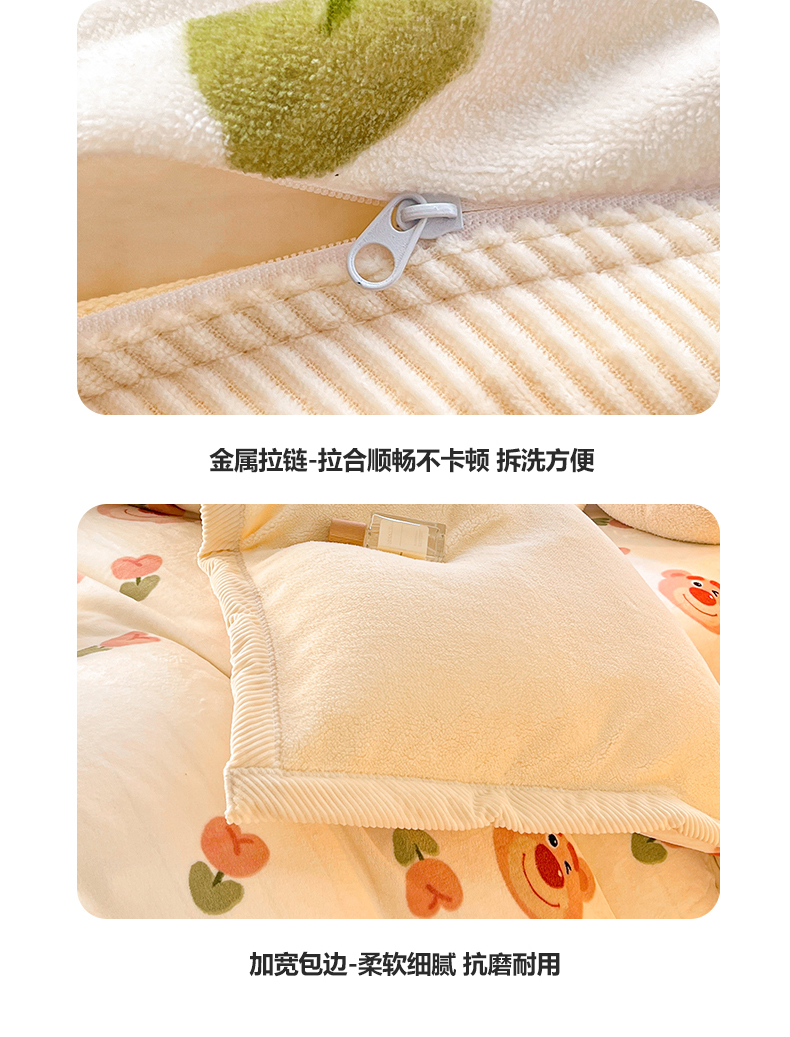宜代光年 2025新款雕花印花暖羊绒系列四件套 暖羊绒-黄色条纹
