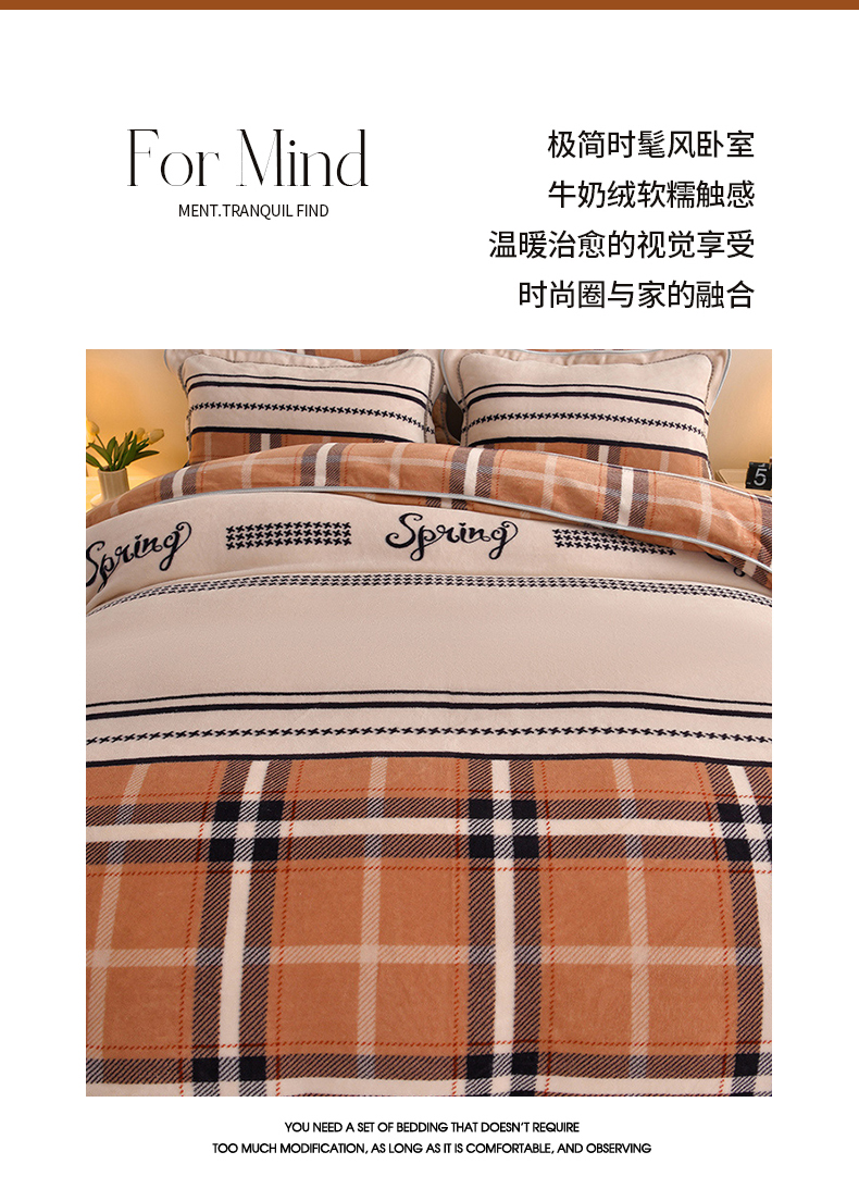 商品名称:雅芝蓝 2025新款8-9斤高克重印花牛奶绒四件套保暖绒套件直播爆款 暖橙格调