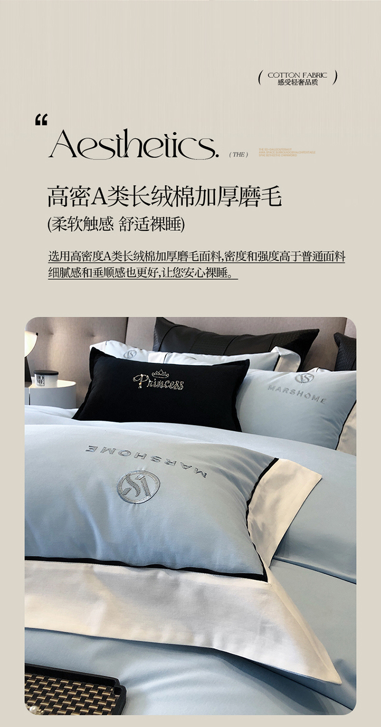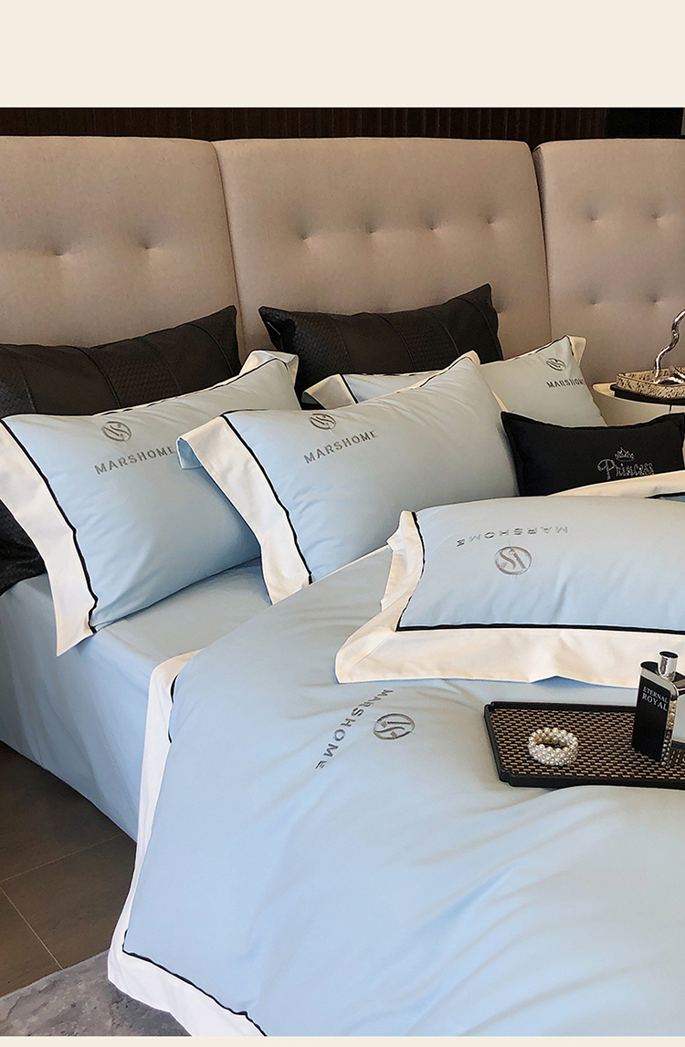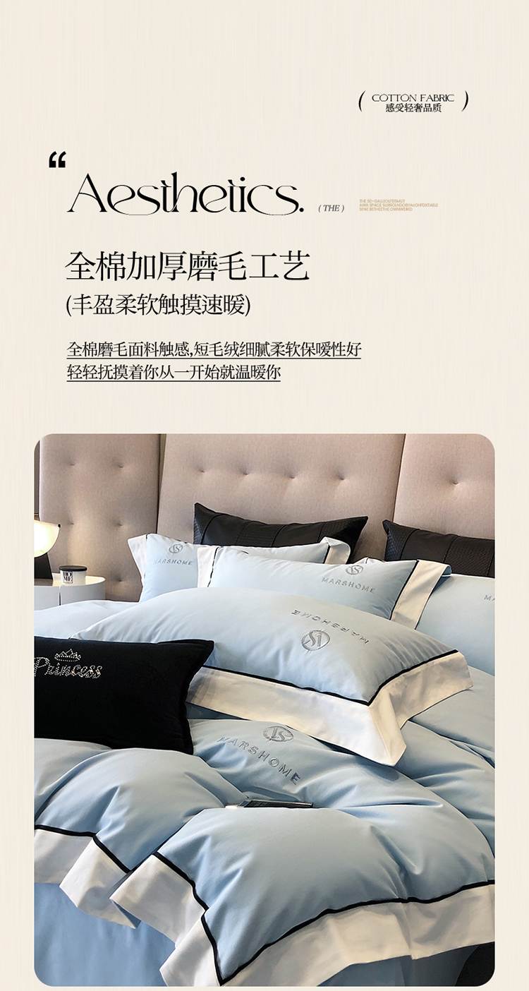 当前位置: 91家纺网 > 商品网购 > 床品套件 > 四件套 > 贡缎全棉四件套 > 高档礼盒装超细旦超柔长绒棉磨毛刺绣四件套秋冬加厚100%纯棉全棉床品 天空蓝-马丁-A类超柔超细旦长绒棉磨毛