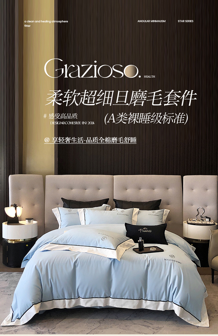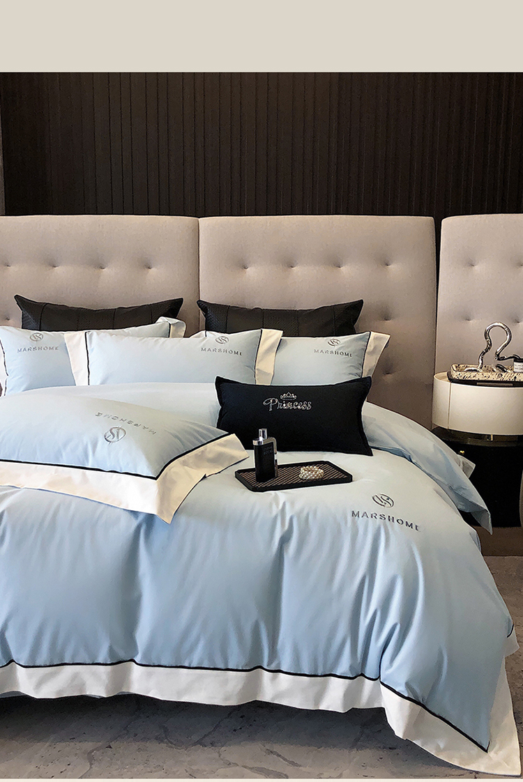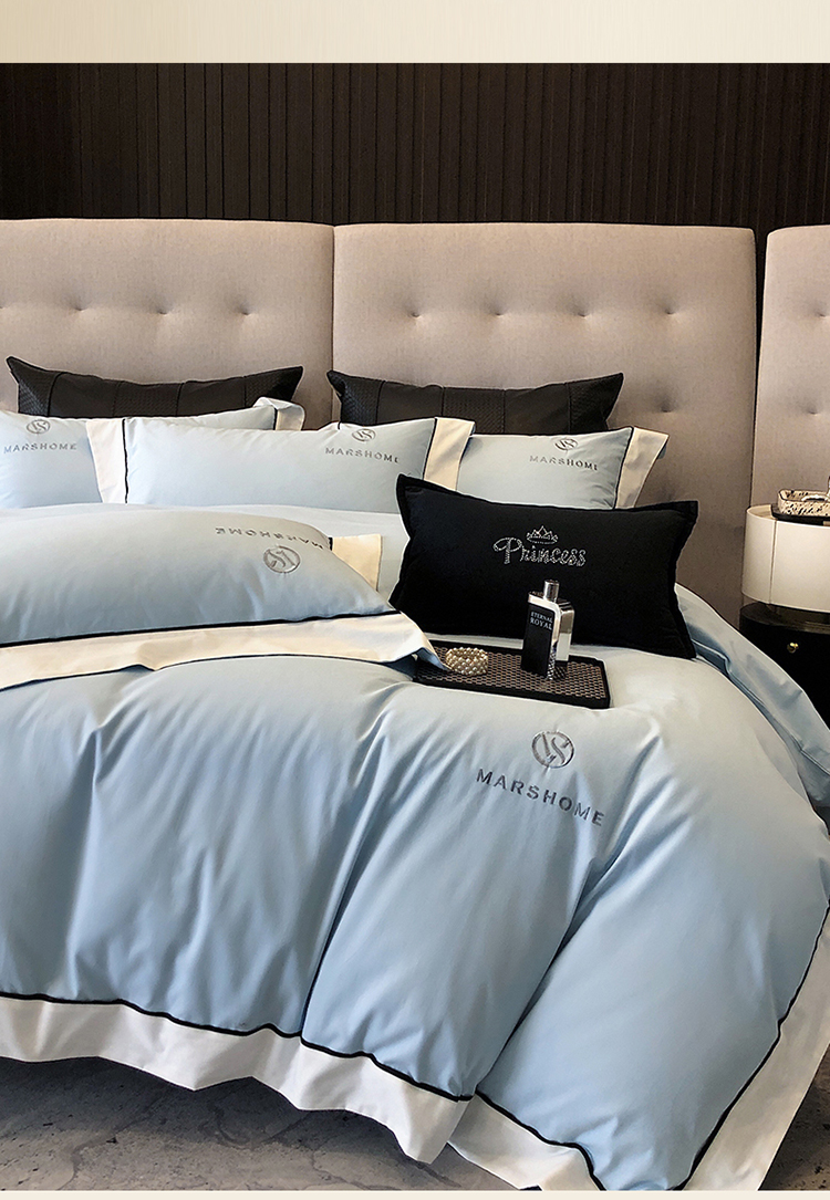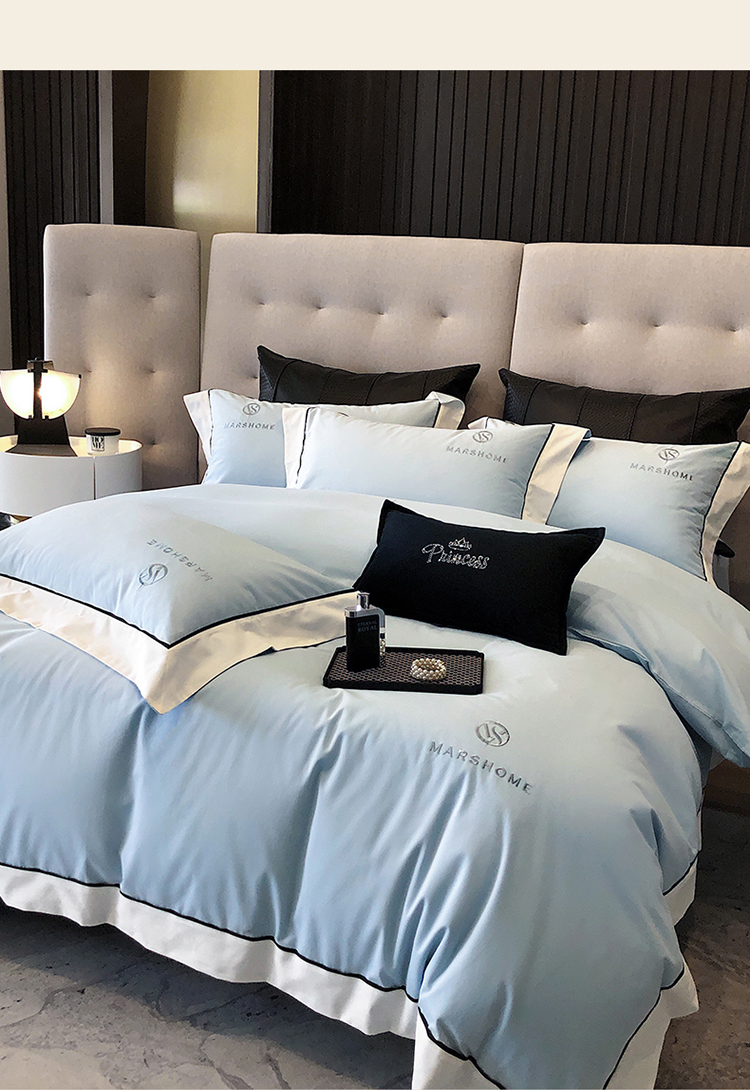 当前位置: 91家纺网 > 商品网购 > 床品套件 > 四件套 > 贡缎全棉四件套 > 高档礼盒装超细旦超柔长绒棉磨毛刺绣四件套秋冬加厚100%纯棉全棉床品 天空蓝-马丁-A类超柔超细旦长绒棉磨毛