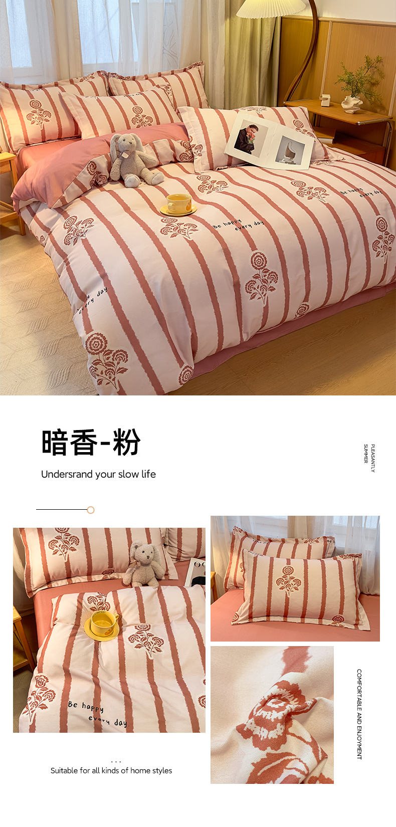 当前位置: 91家纺网 > 商品网购 > 床品套件 > 四件套 > 普通磨毛四件套 > 丝芙妮家居(原乐视家纺) 2025新款全棉磨毛多规格单品套件系列-四件套 暗香-粉