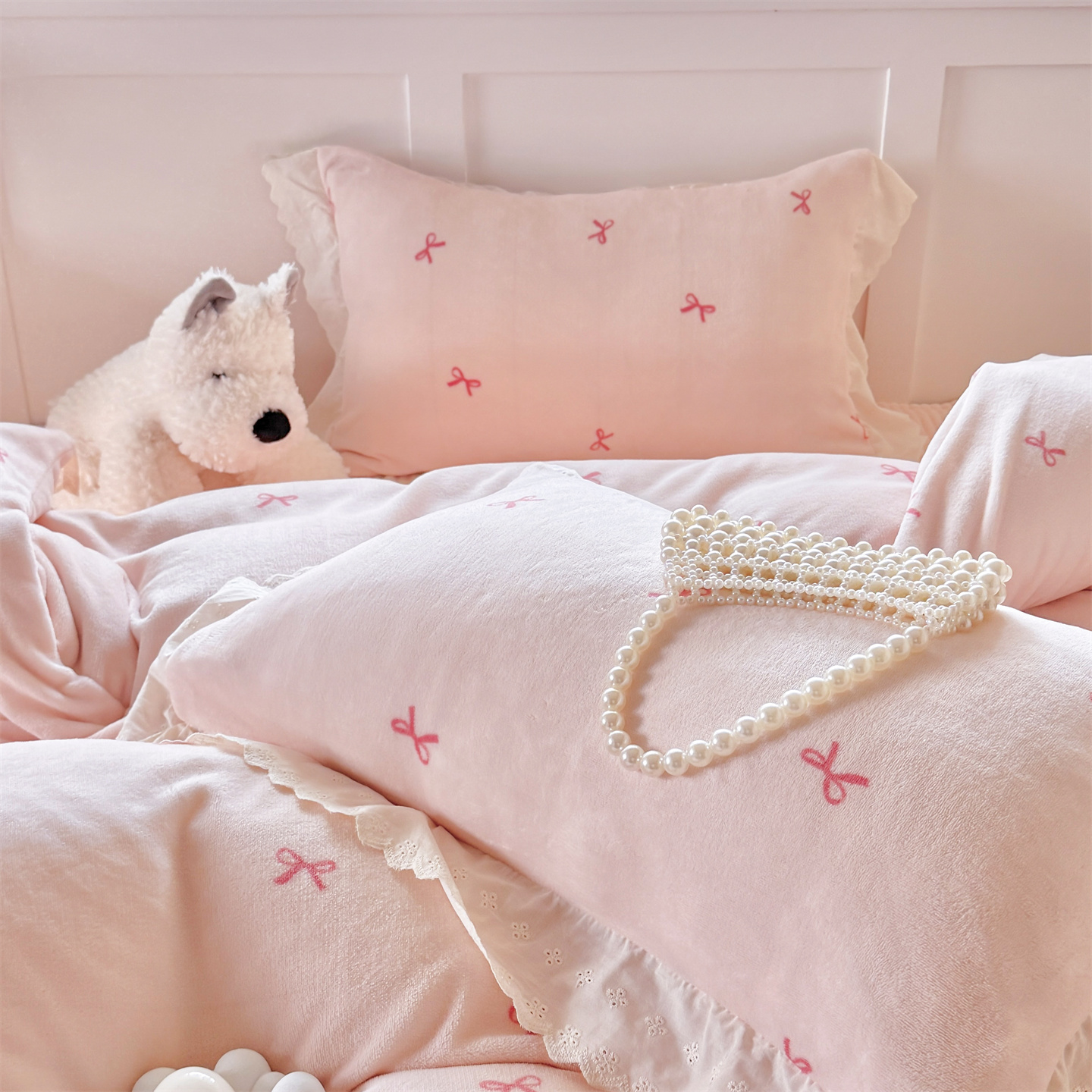 (总)欧尚 2025新款牛奶绒花边床盖四件套