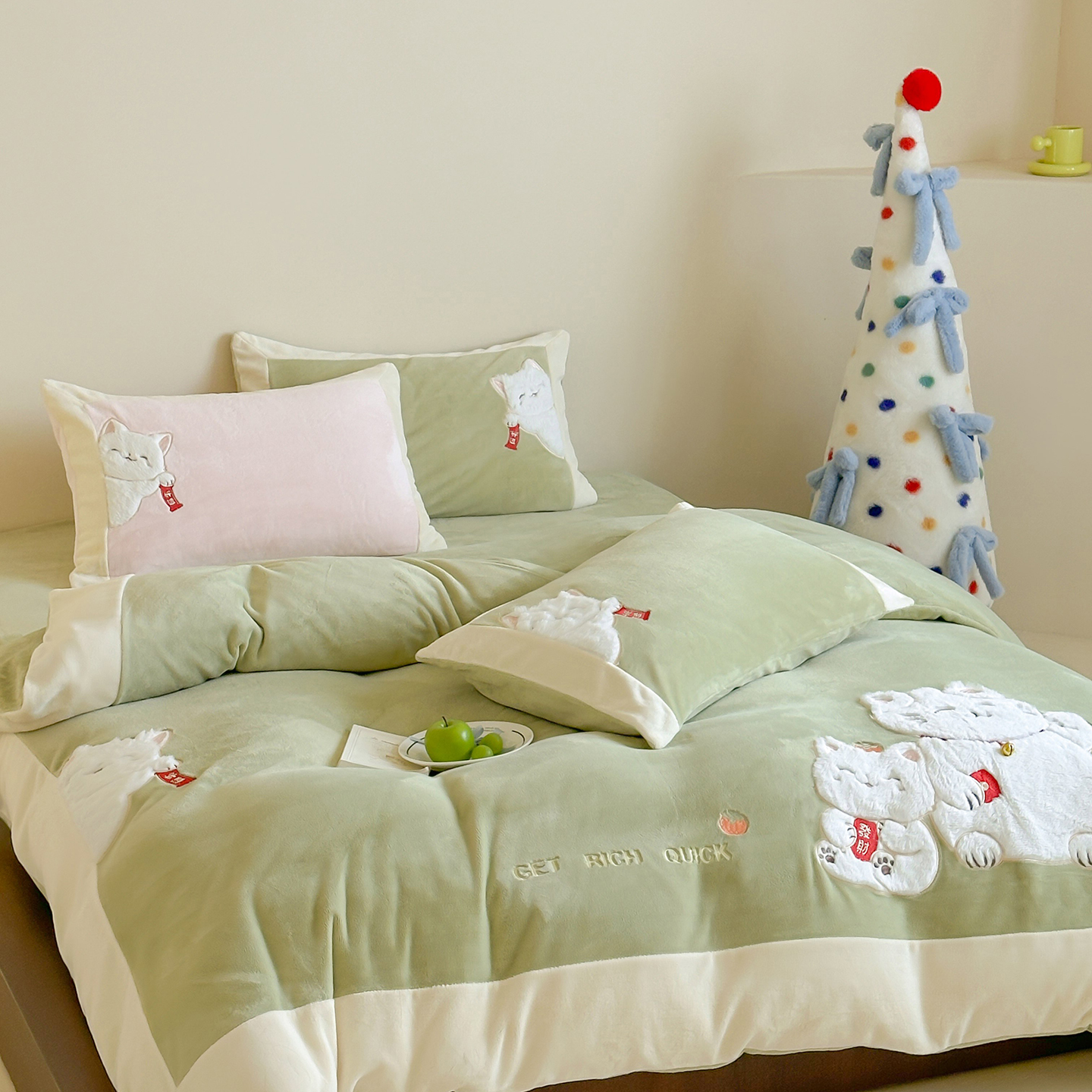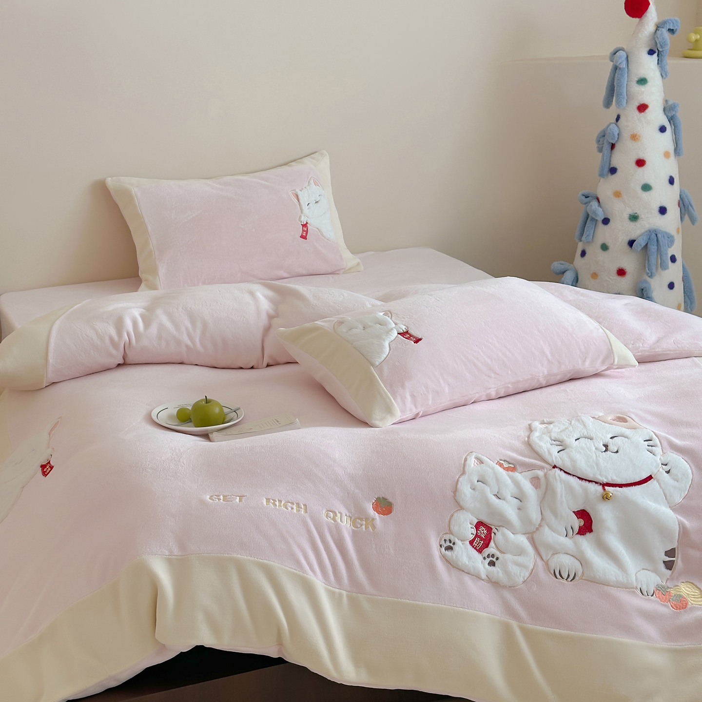 当前位置: 91家纺网 > 商品网购 > 床品套件 > 四件套 > 牛奶绒四件套 > JUICY 橘滋家纺 2025新款高定敲可爱招财猫牛奶奢绒系列四件套 (线上控价 券后不低于368元) 福抱抱招财猫-晴空微云