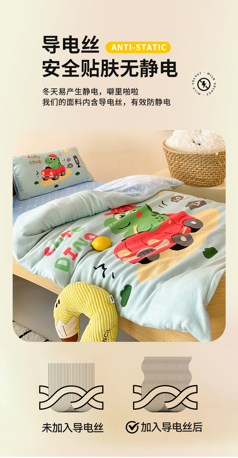 当前位置: 91家纺网 > 商品网购 > 床品套件 > 多件套 > 多件套 > 宝贝优选 2025新款A类卡通数码印幼儿园儿童牛奶绒套件 恐龙小司机