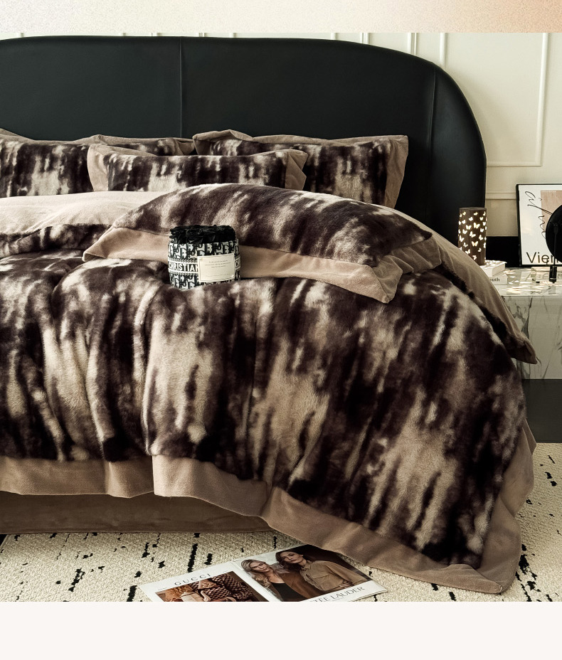 (总)九花鹿 2025新款丹麦皮草绒水貂绒四件套,豹纹-粉,豹纹-灰,豹纹-咖