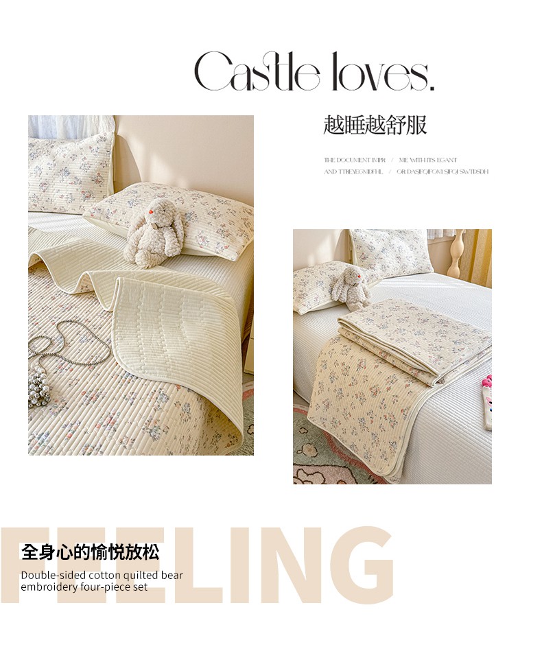 (总)妮可 2025新款荷叶边纯棉绗缝四季款多功能床盖,奶油黄,冰湖蓝,豆豆沙,梦幻粉,气质灰,森林绿,芝兰紫