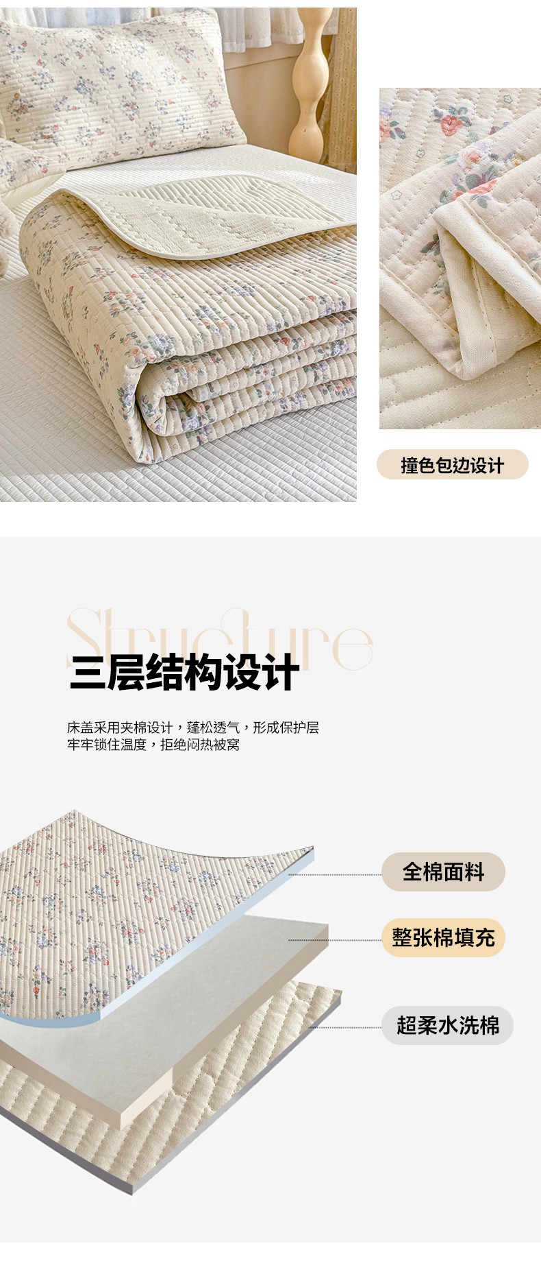 妮可 2025新款热款花型印花全棉夹棉多功能床垫-床盖 繁花