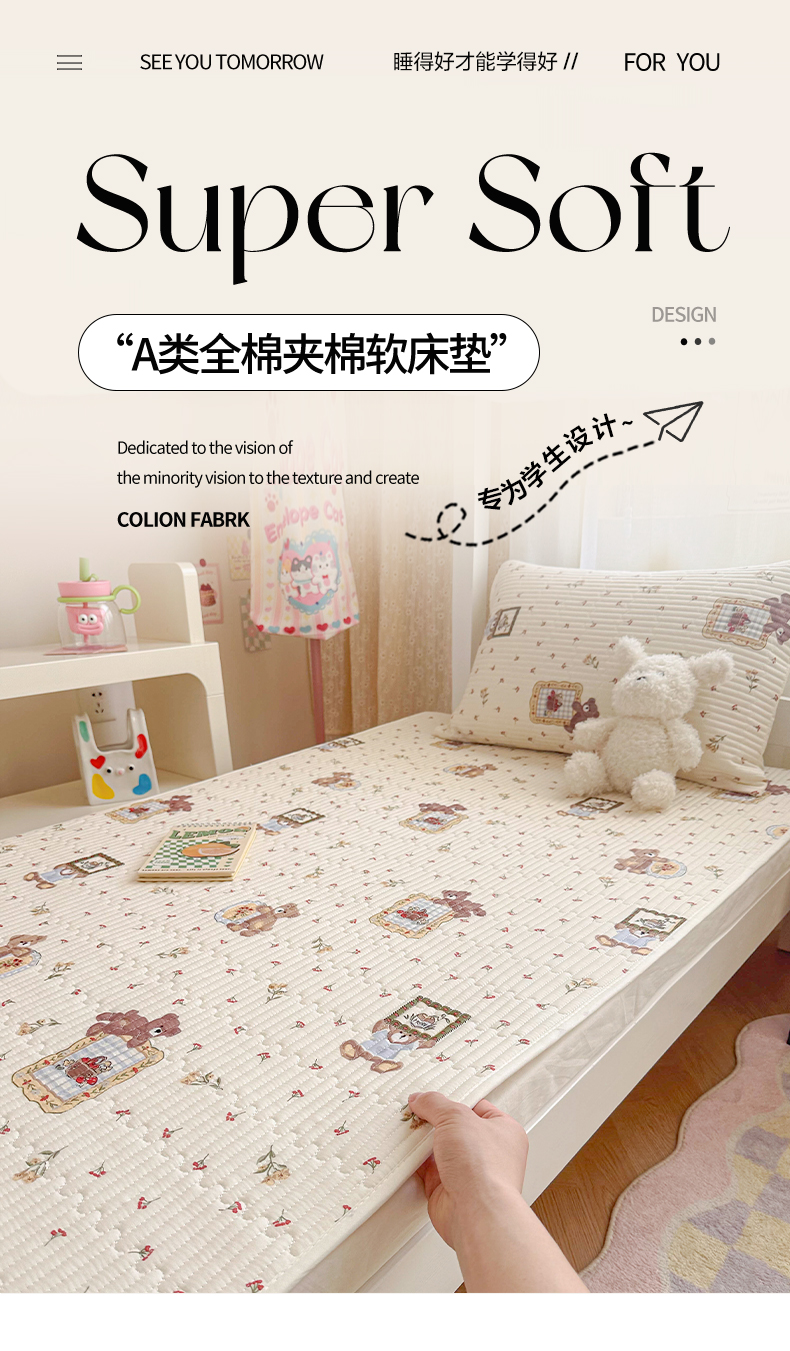 当前位置: 91家纺网 > 商品网购 > 床垫/床褥 > 普通床垫 > 妮可 2025热款学生床全棉夹棉多功能床垫-床盖 拍照小熊