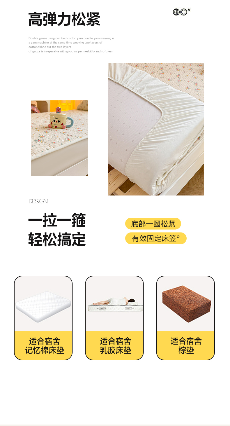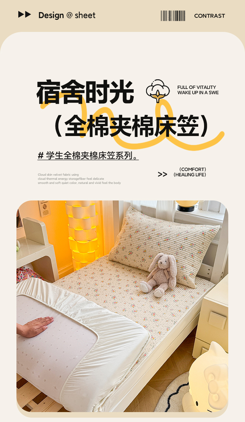 妮可 2025新款卡通印花学生宿舍原棉夹棉床笠系列 小花K