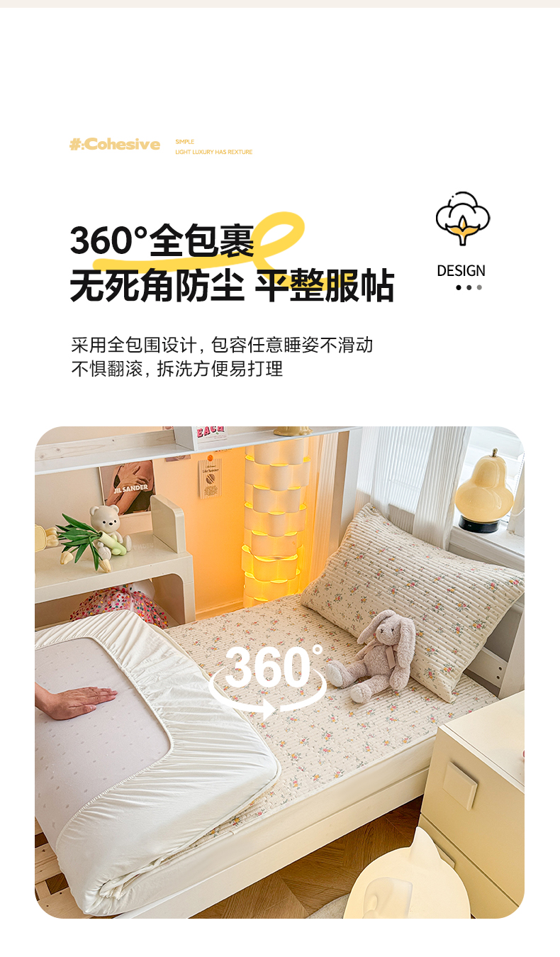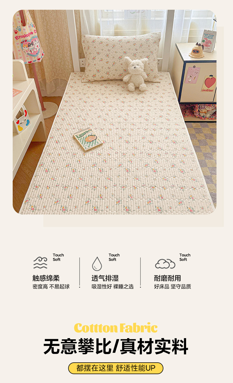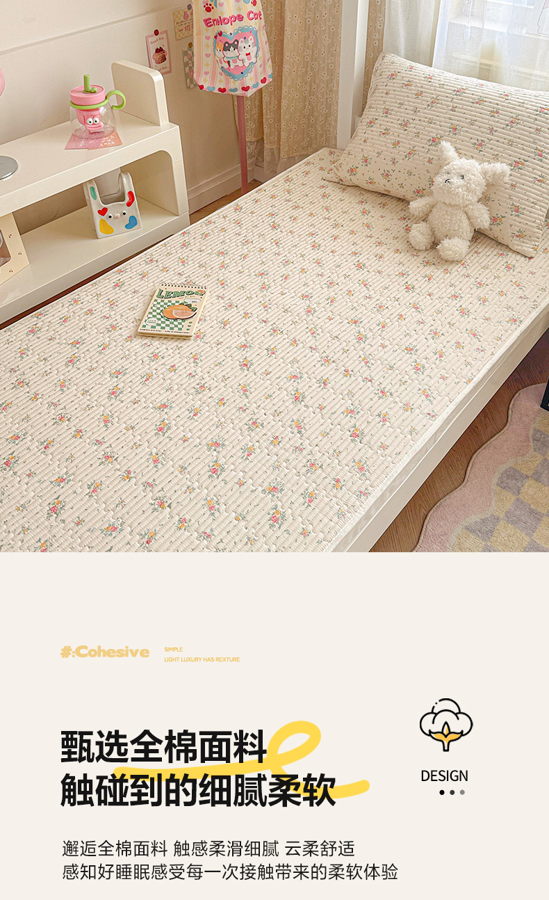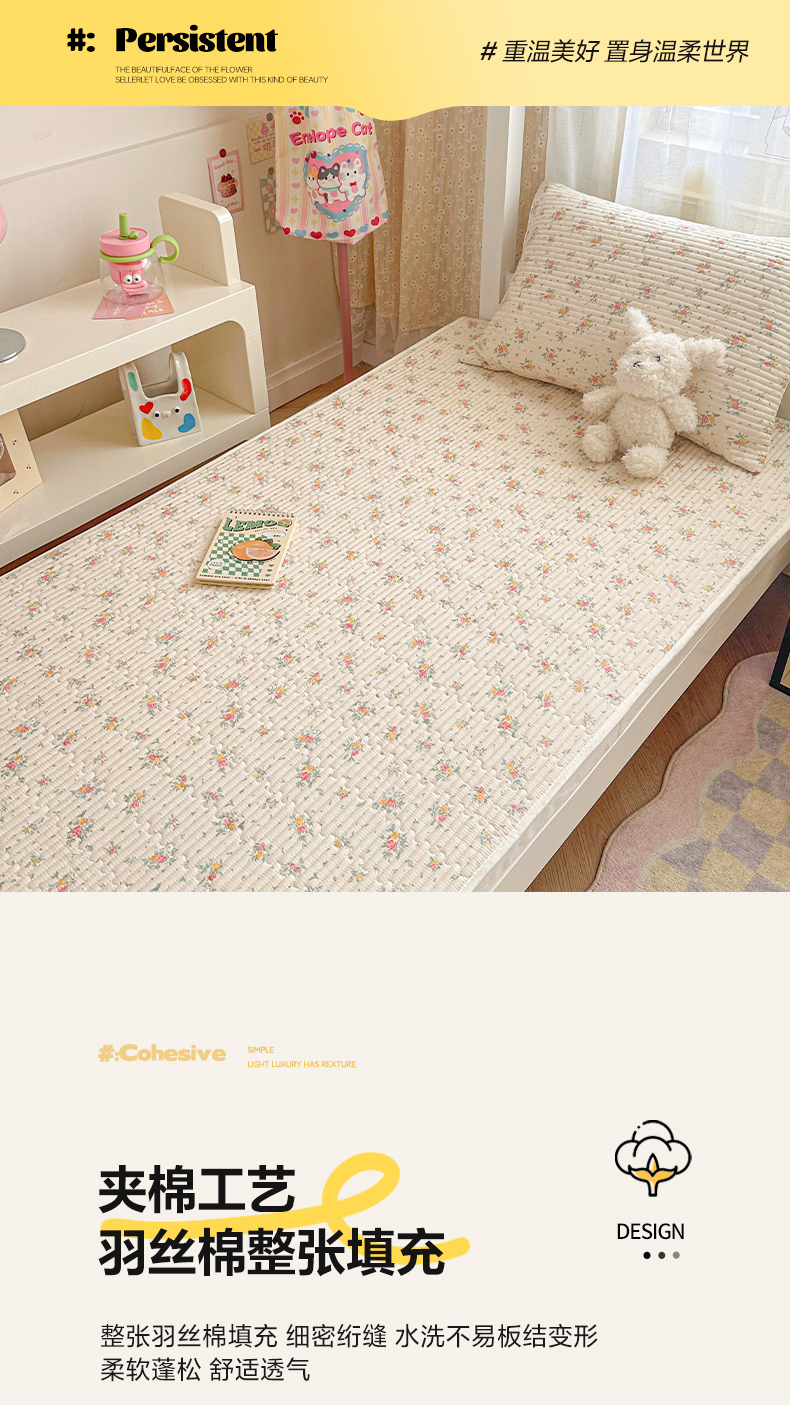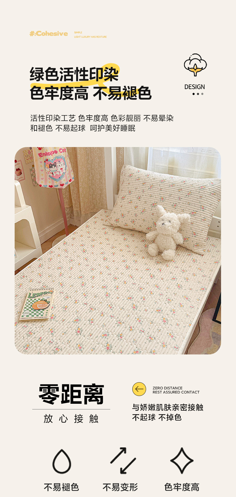 • 91家纺网 家纺一手货源 找家纺 妮可 2025新款卡通印花学生宿舍原棉夹棉床笠系列 小花K