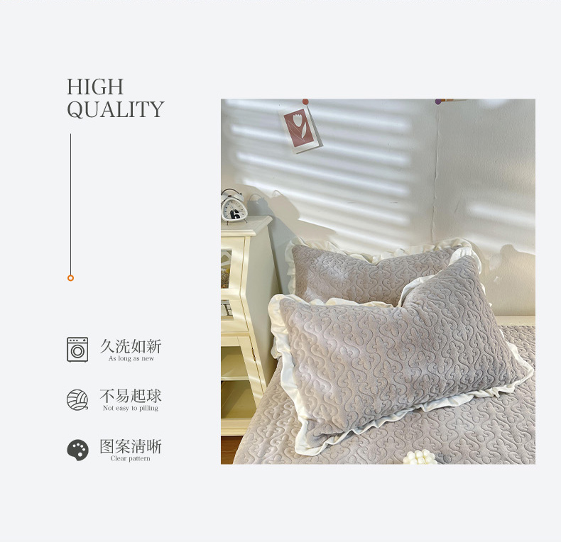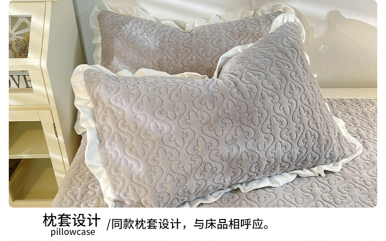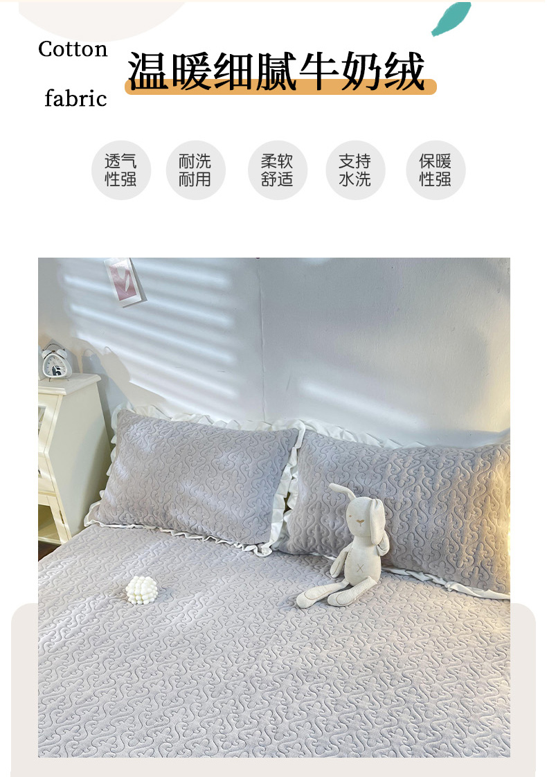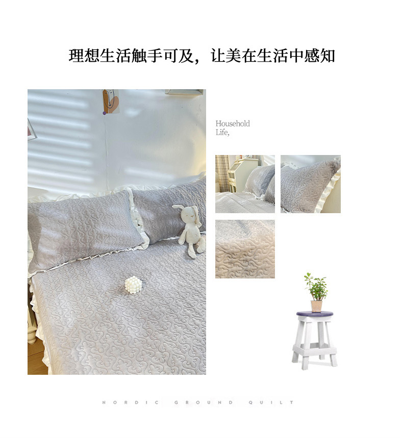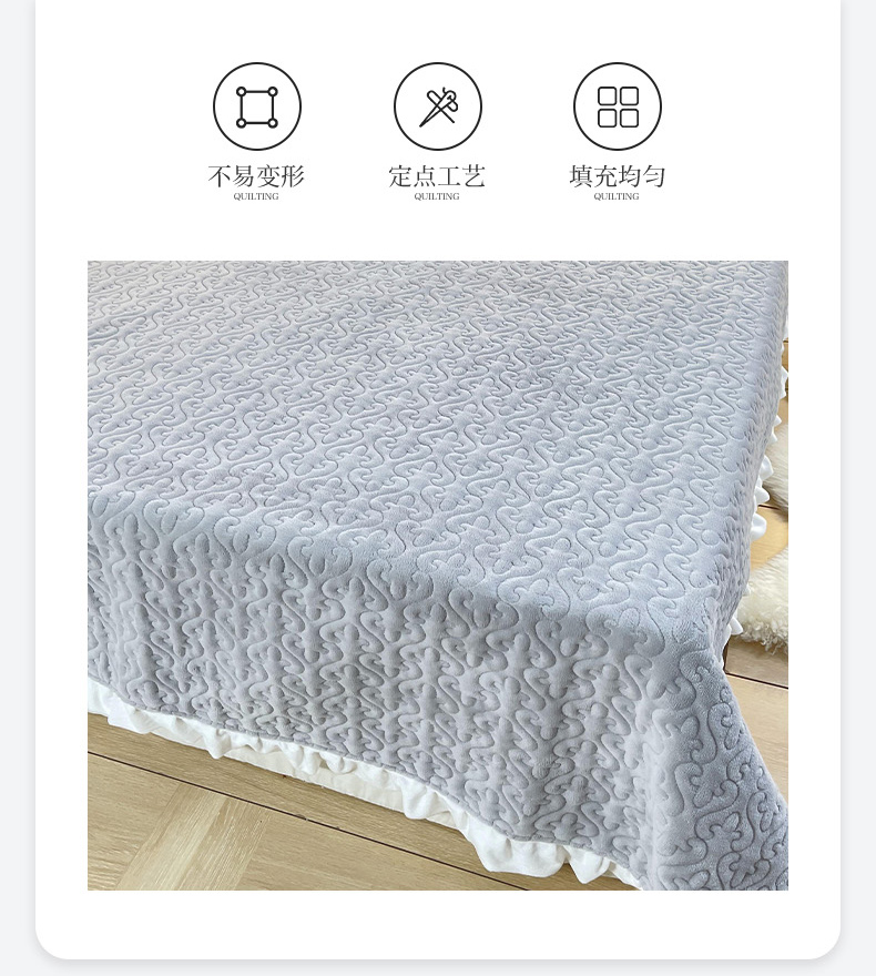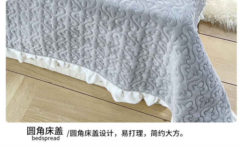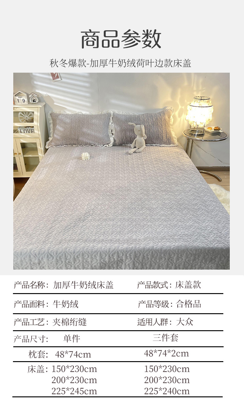 • 91家纺网 家纺一手货源 找家纺 妮可 2025秋冬新款加厚牛奶绒多功能荷叶边纯色床盖 温暖灰