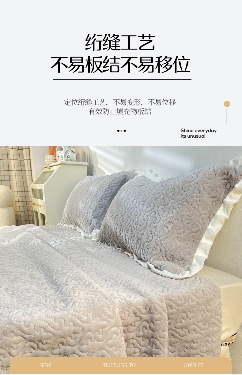 妮可 2025秋冬新款加厚牛奶绒多功能荷叶边纯色床盖 温暖灰