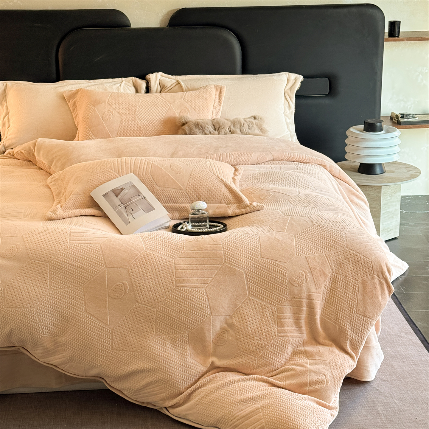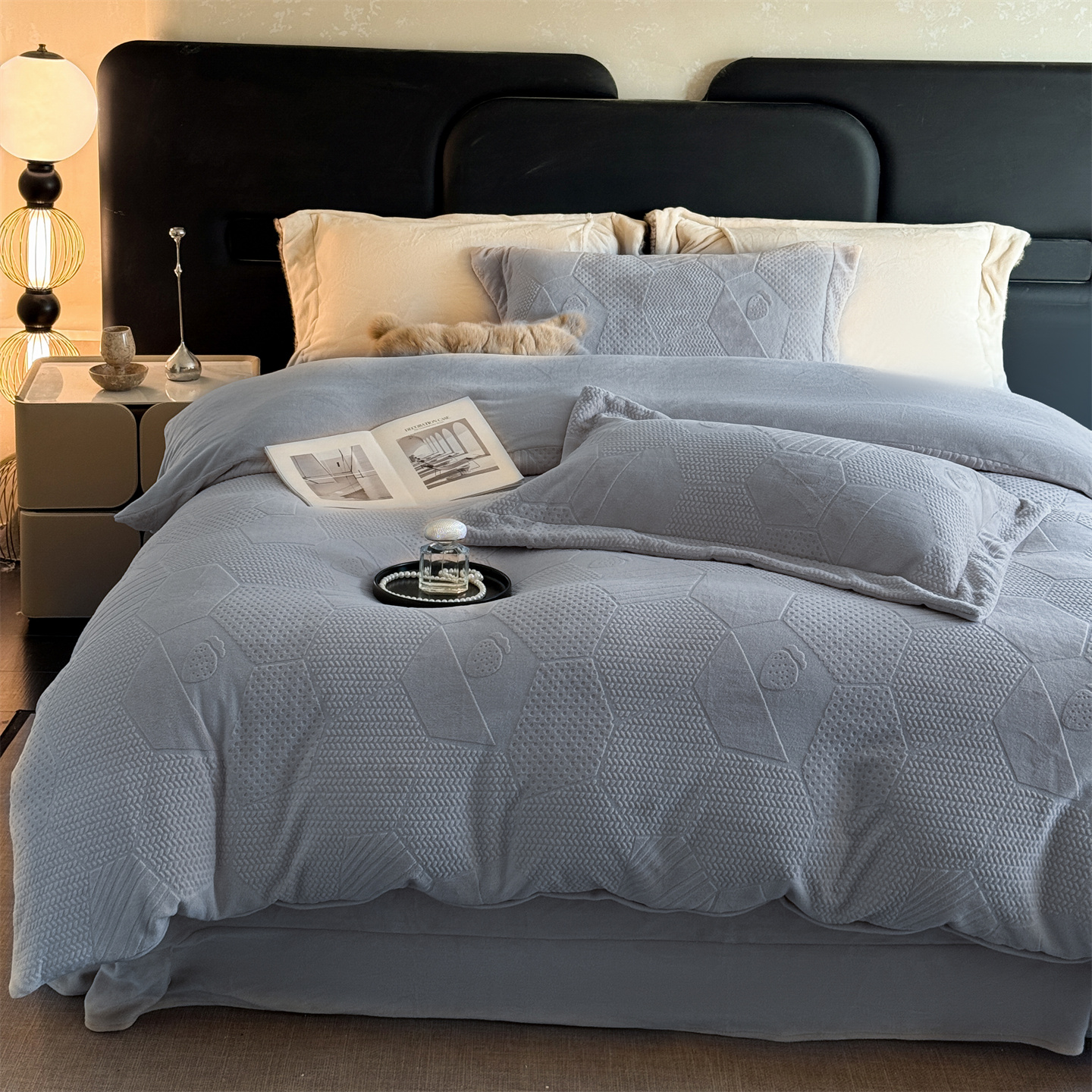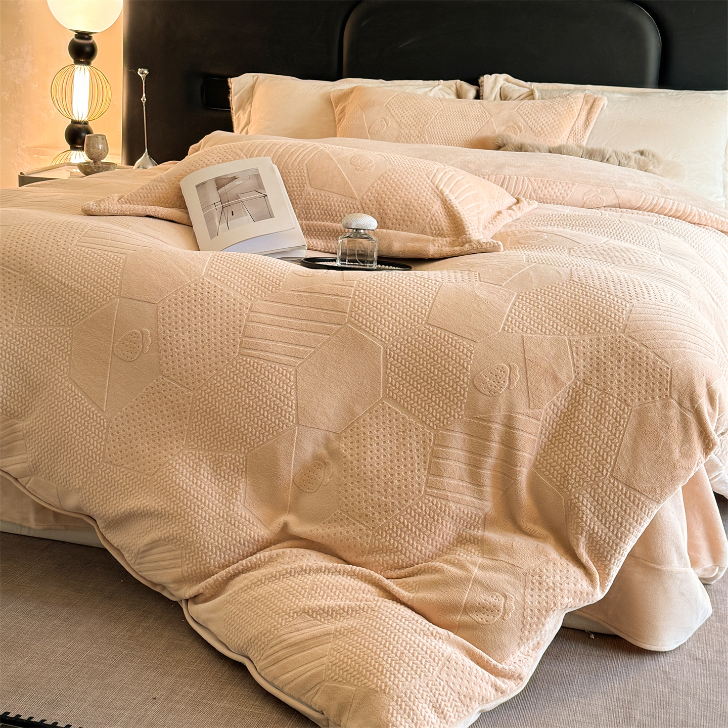 商品名称:(总)芯丝路枕业 2025新款牛奶绒四件套-水立方系列