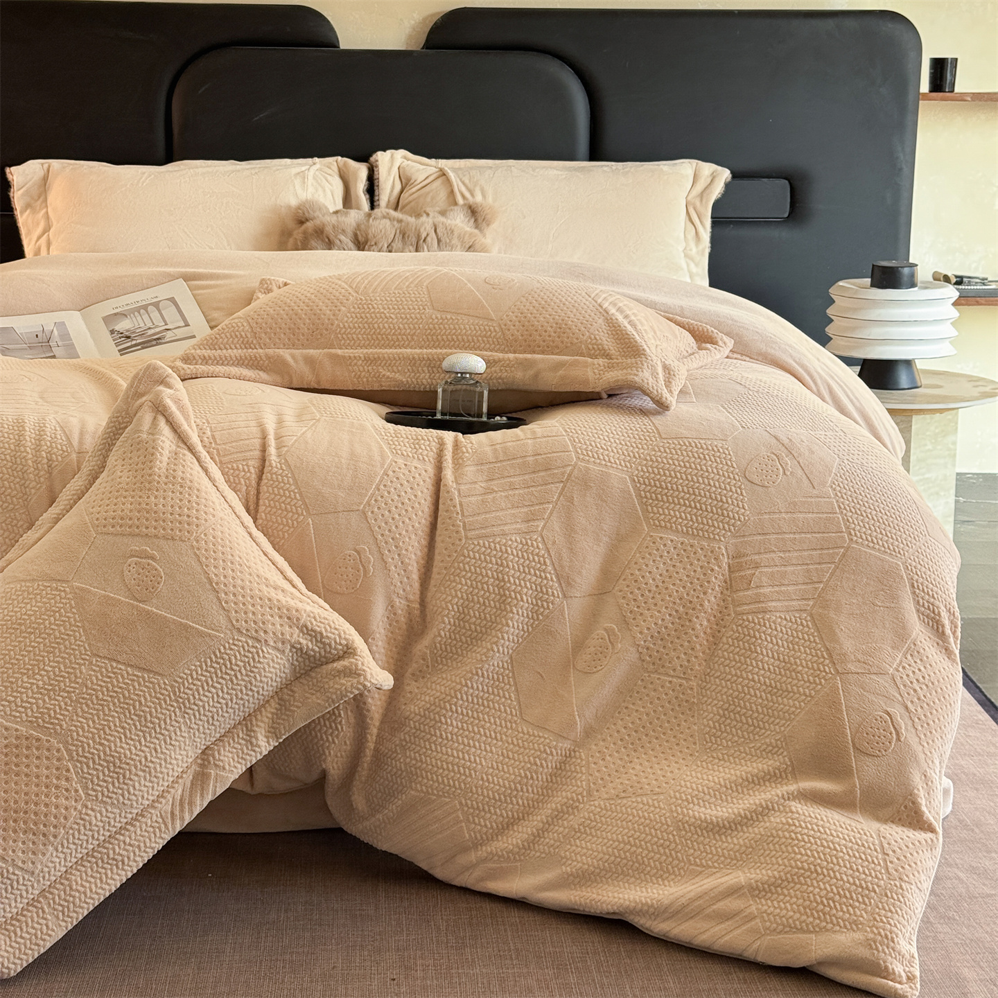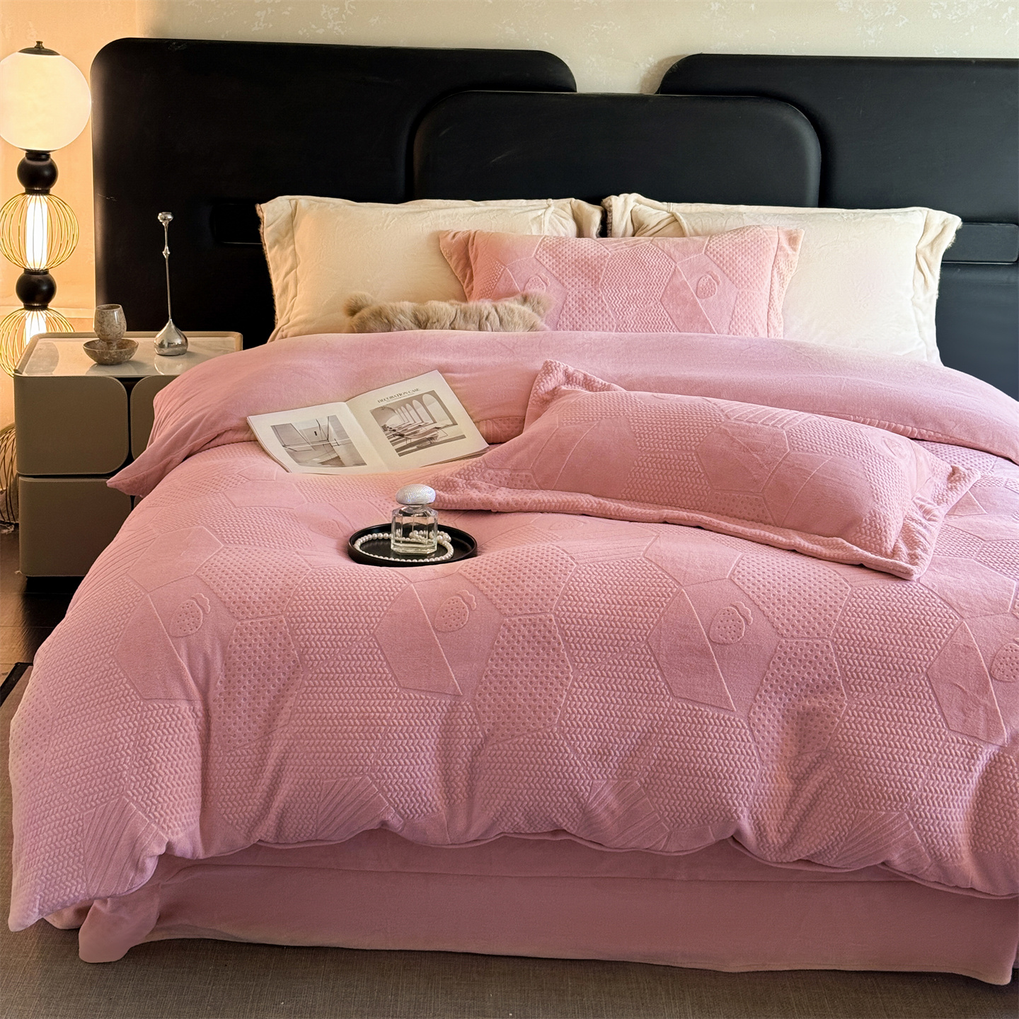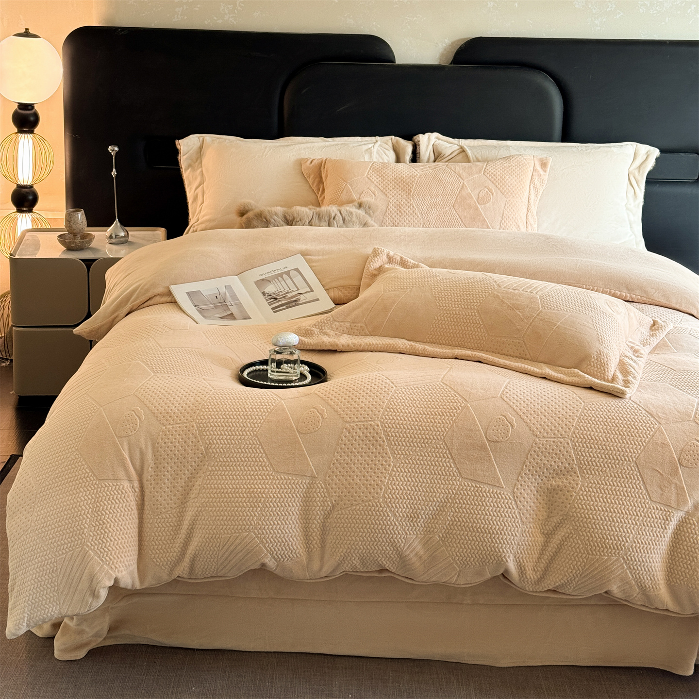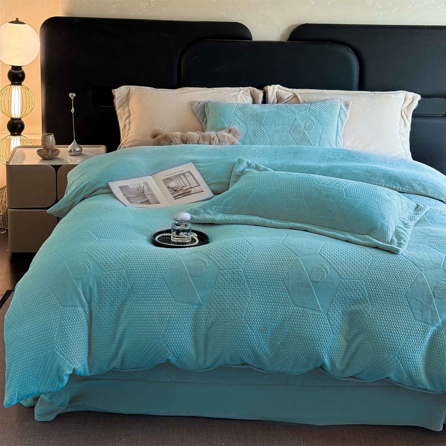 商品名称:(总)芯丝路枕业 2025新款牛奶绒四件套-水立方系列