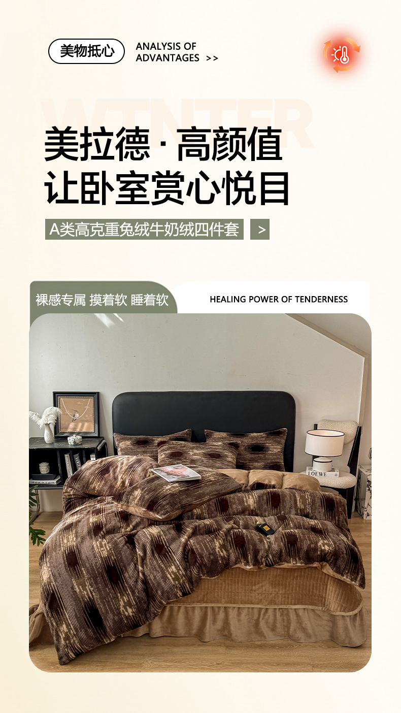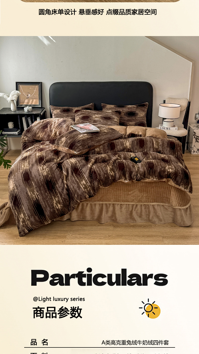 当前位置: 91家纺网 > 商品网购 > 床品套件 > 四件套 > 牛奶绒四件套 > 乐窝家纺仓储 2025新款【8斤重】轻奢复古美拉德兔兔绒牛奶绒床单床笠床盖款四件套(日发50套优惠8元一套) 轮回