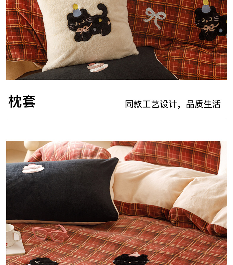 (总)卡姿家纺 2025秋冬仿羊绒蒂芙呢绒—床笠三件套,毛绒小兔,小猫安娜,小猫噜噜,小熊和小狗