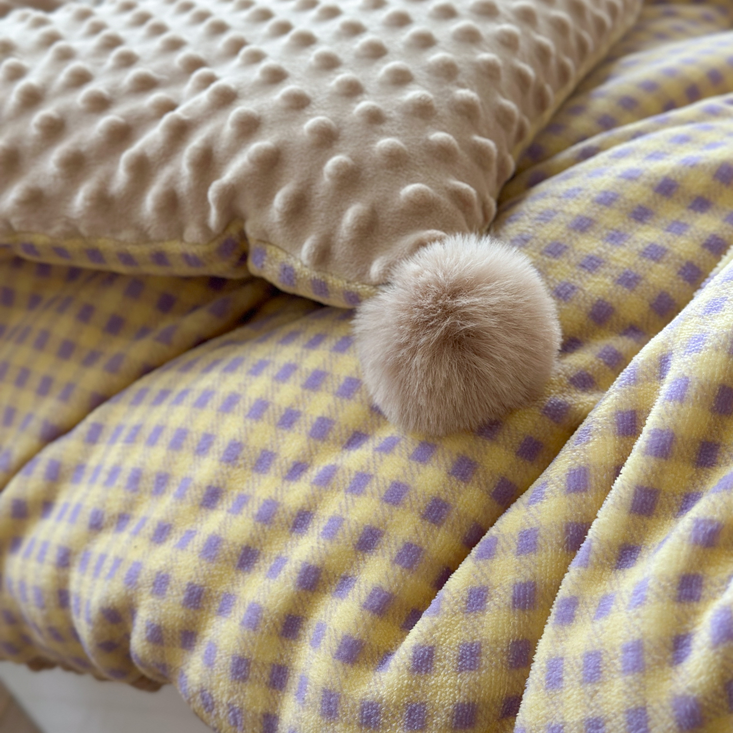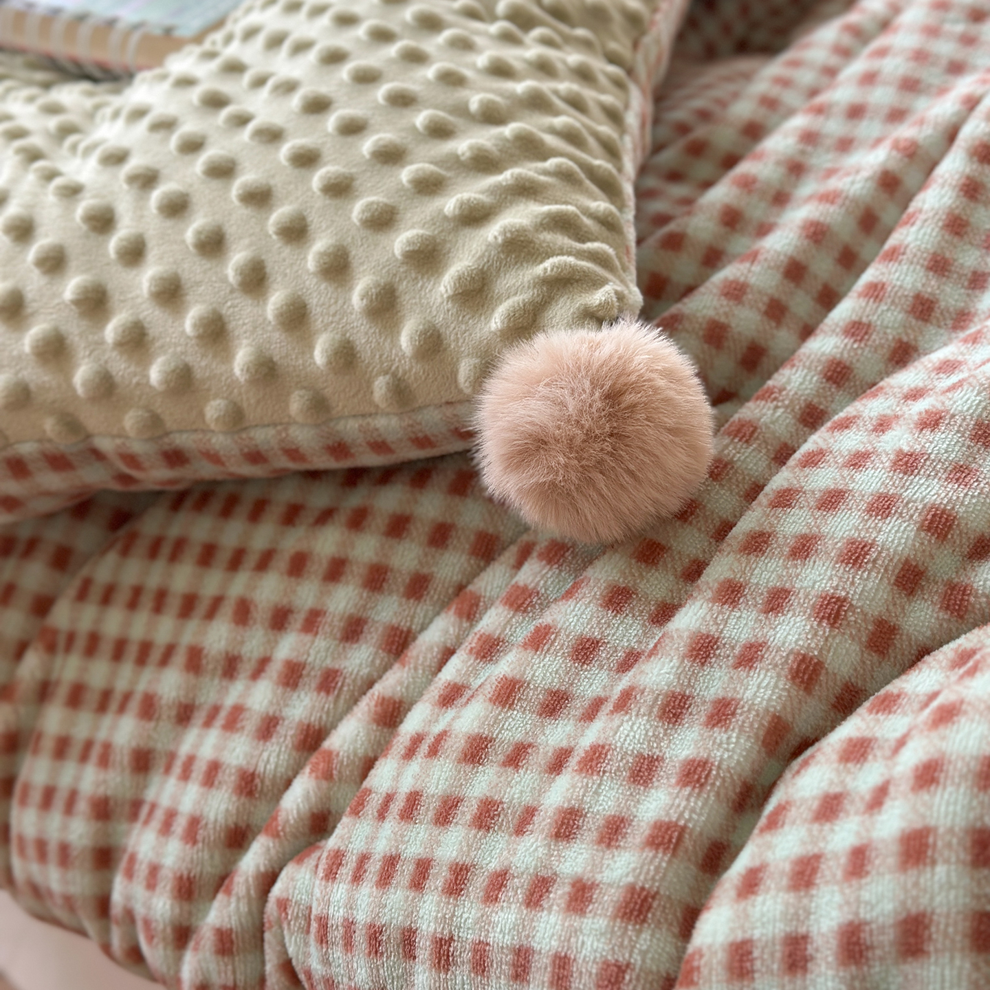 有货 2025新款格调牛奶绒毛巾绣豆豆被系列 组合