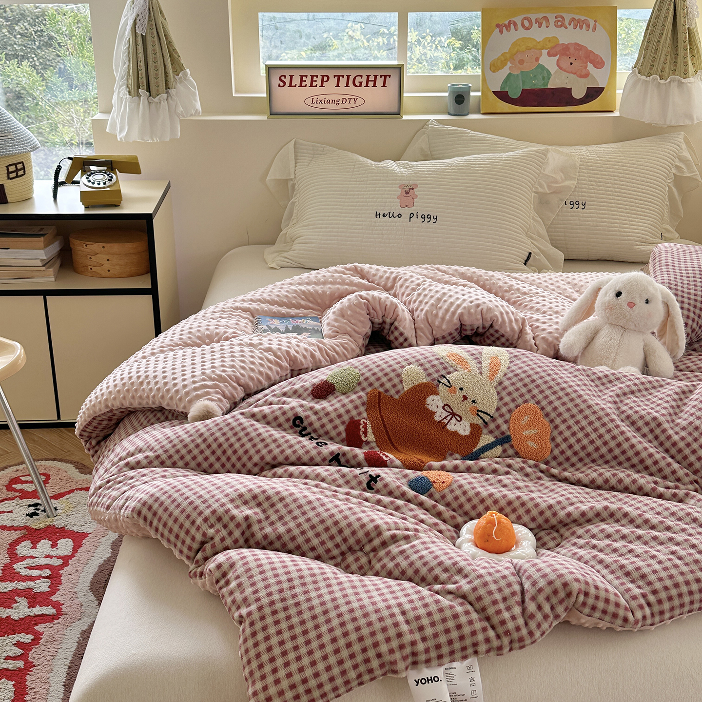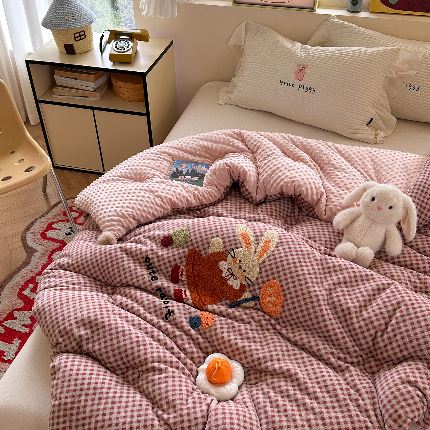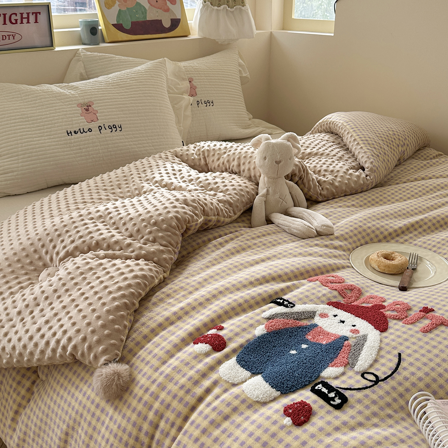 (总)有货 2025新款格调牛奶绒毛巾绣豆豆被系列,格调卡比巴拉,格调可爱兔,格调礼物熊,格调蘑菇小兔,格调苹果熊,组合