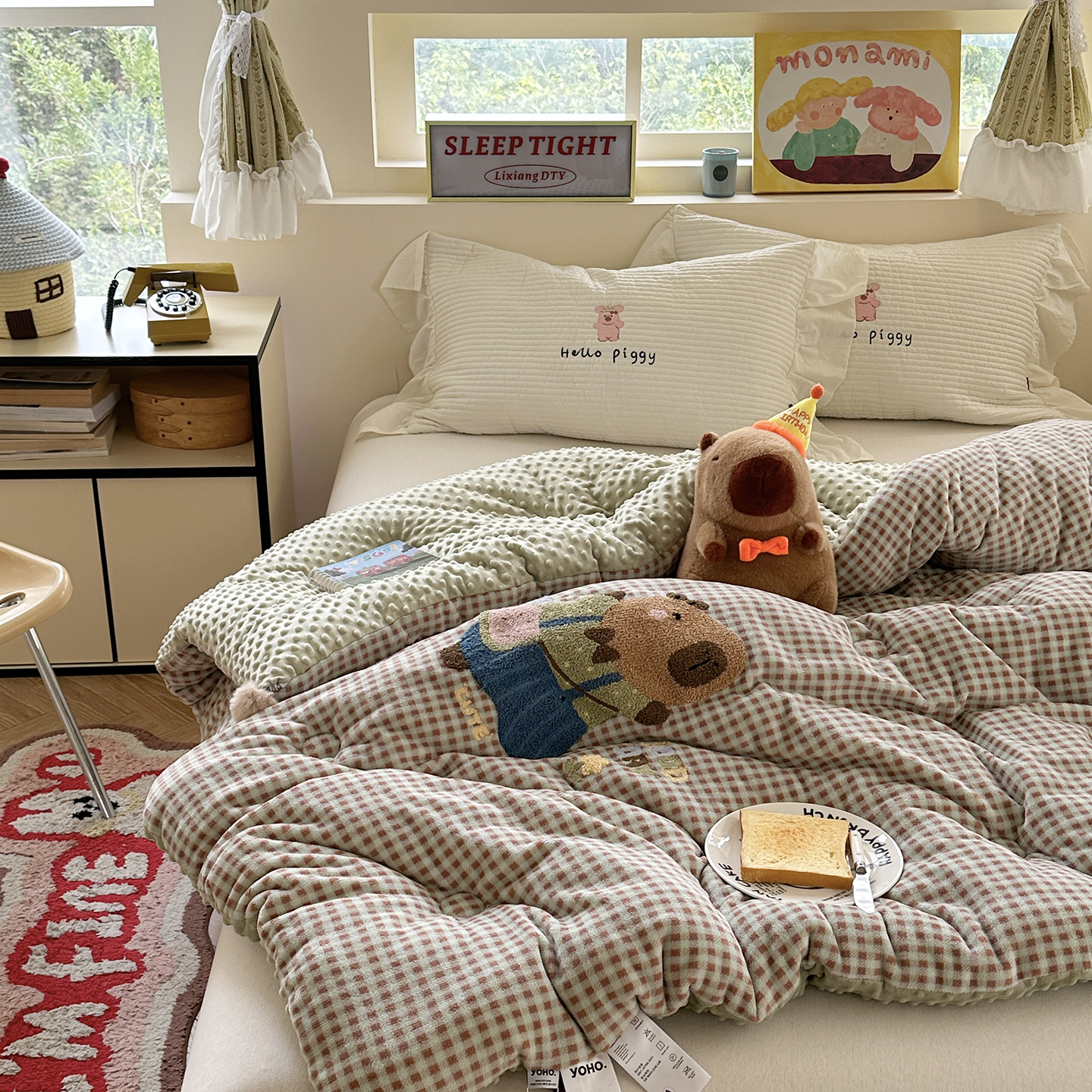 (总)有货 2025新款全棉单层纱毛巾绣豆豆被被子被芯,组合图仅供展示不可下单,花园姑娘,卡比爱心,卡比点点,可爱兔,礼物熊,蘑菇小兔,南瓜熊,森林女孩