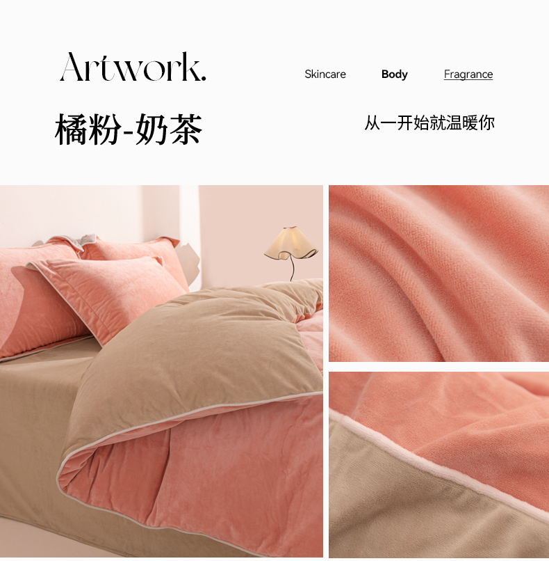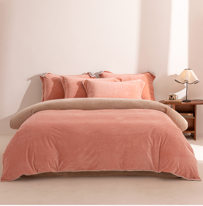 商品名称:安力森/诚臻酒店用品 2025新款麻绳婴儿绒四件套秋冬加厚亲肤保暖卧室床品套件 橘粉-乳酪