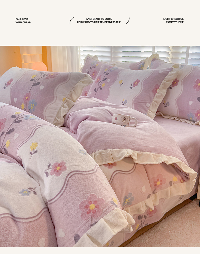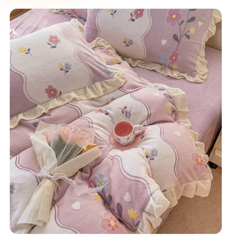 (总)爱家(原缔乐家纺) 2025新款牛奶雕花绒四件套-香香公主,香香公主-公主粉,香香公主-梦幻紫,香香公主-奶油黄