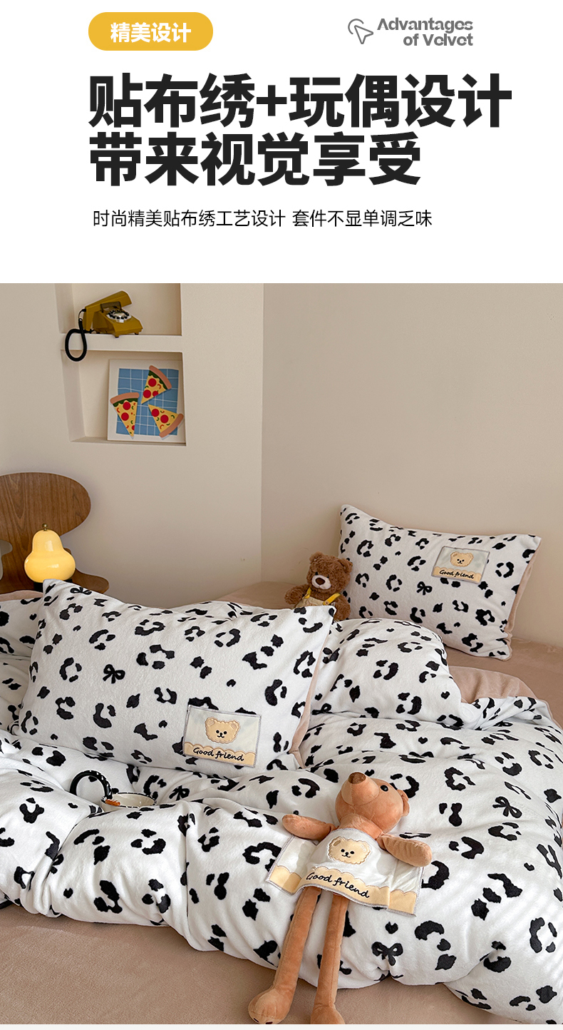 当前位置: 91家纺网 > 商品网购 > 床品套件 > 四件套 > 牛奶绒四件套 > (总)蜜柚 2025新款高克重牛奶绒数码印花贴布绣玩偶设计四件套