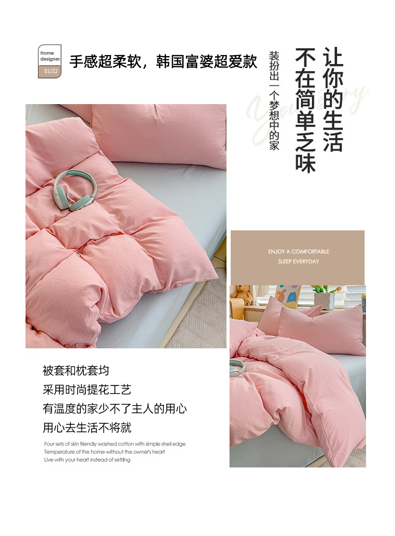 商品名称:2026新款苏东来家纺外贸出口跨境韩国提花棉四件套高端超柔手感超好(长期做,十年不换款) T粉色+T水绿