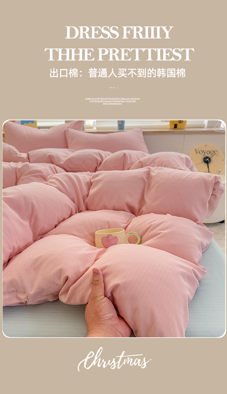 2026新款苏东来家纺外贸出口跨境韩国提花棉四件套高端超柔手感超好(长期做,十年不换款) T粉色+T水绿