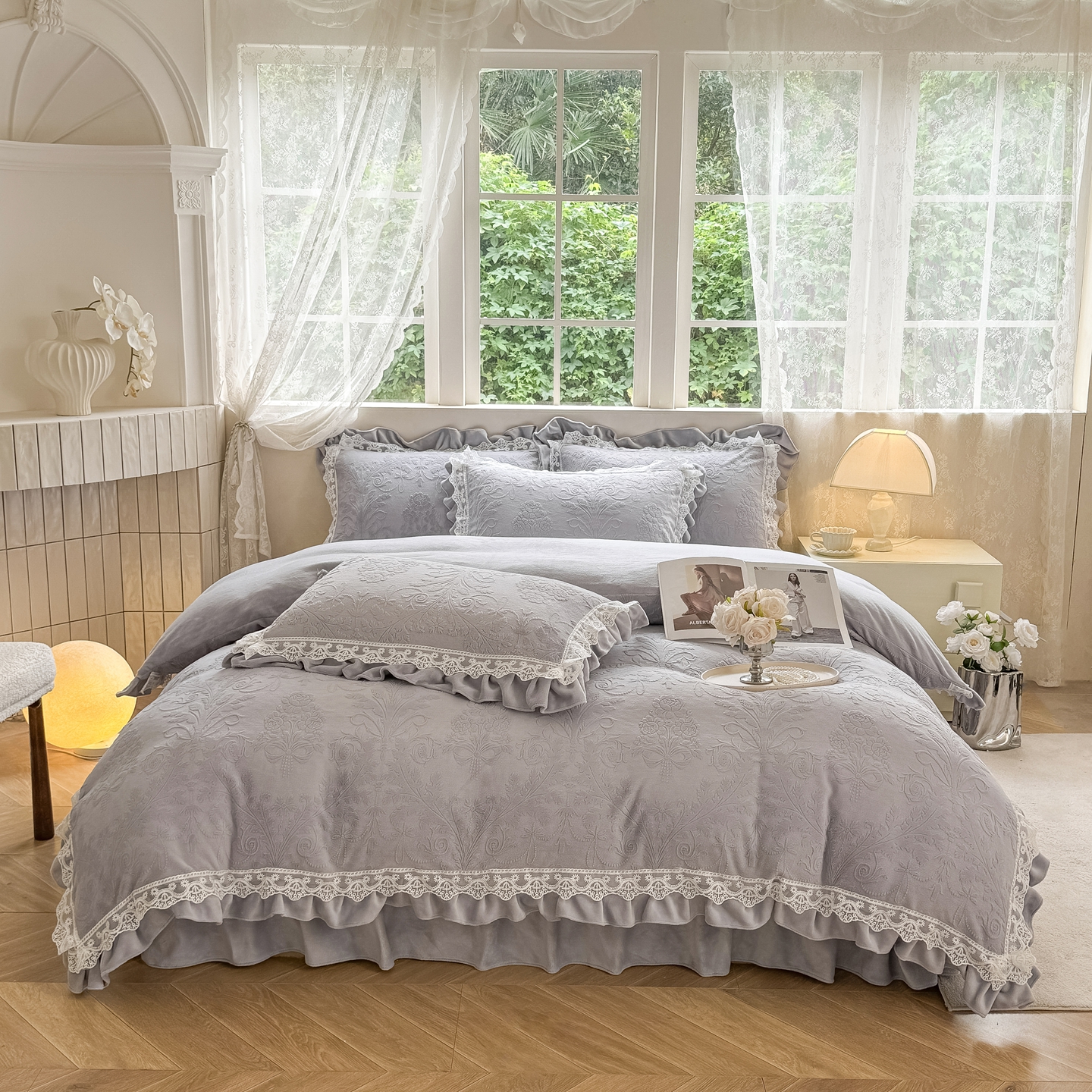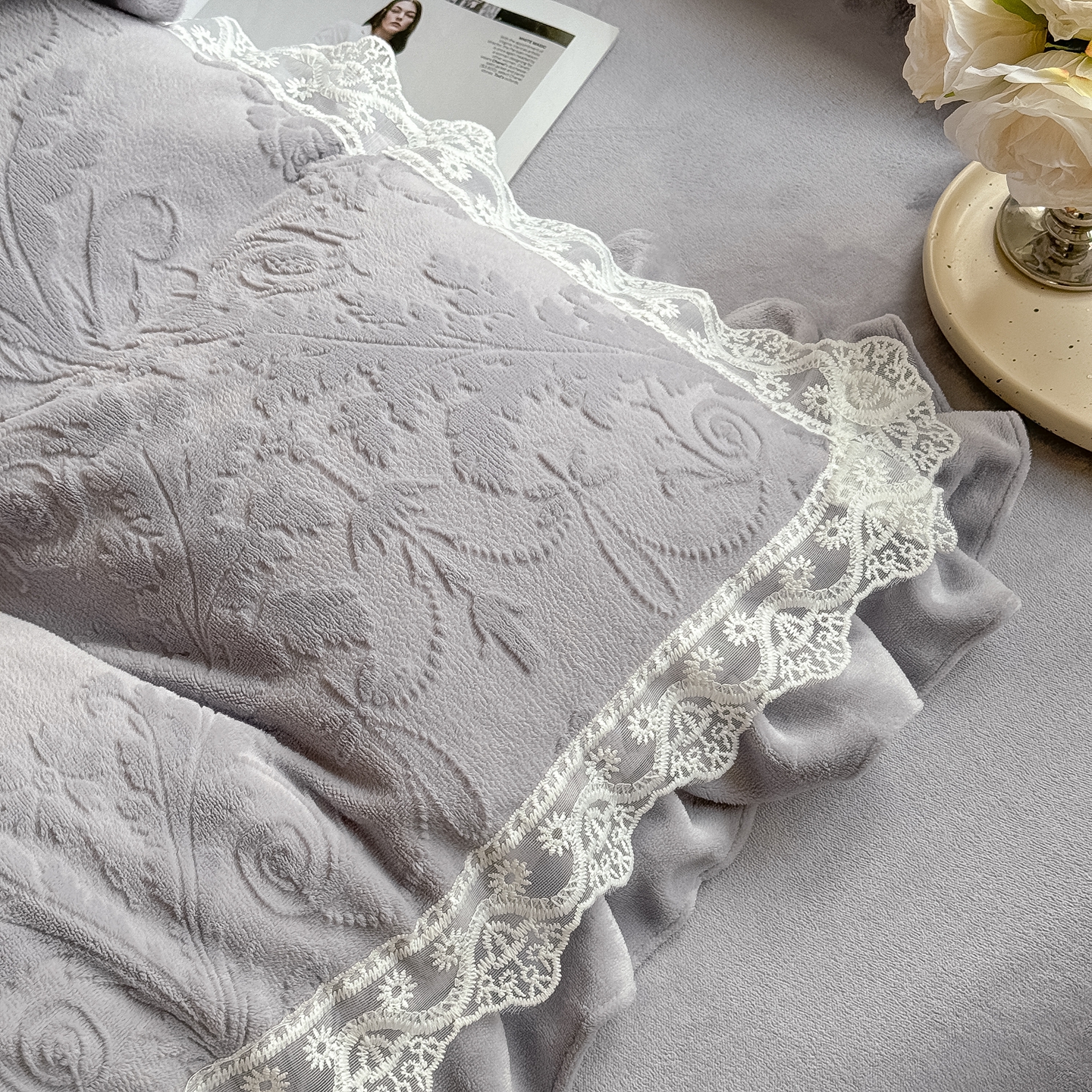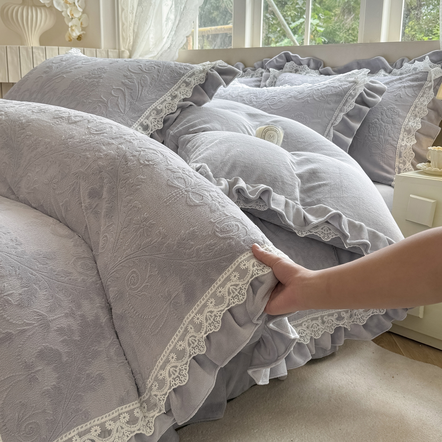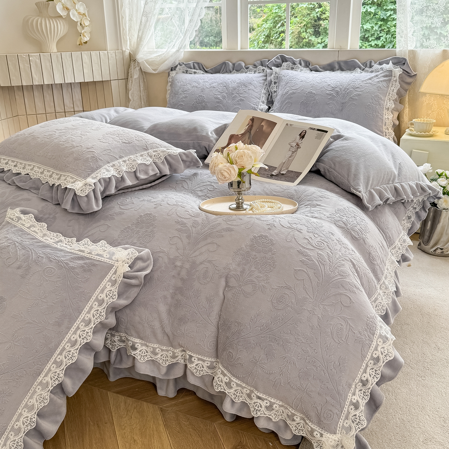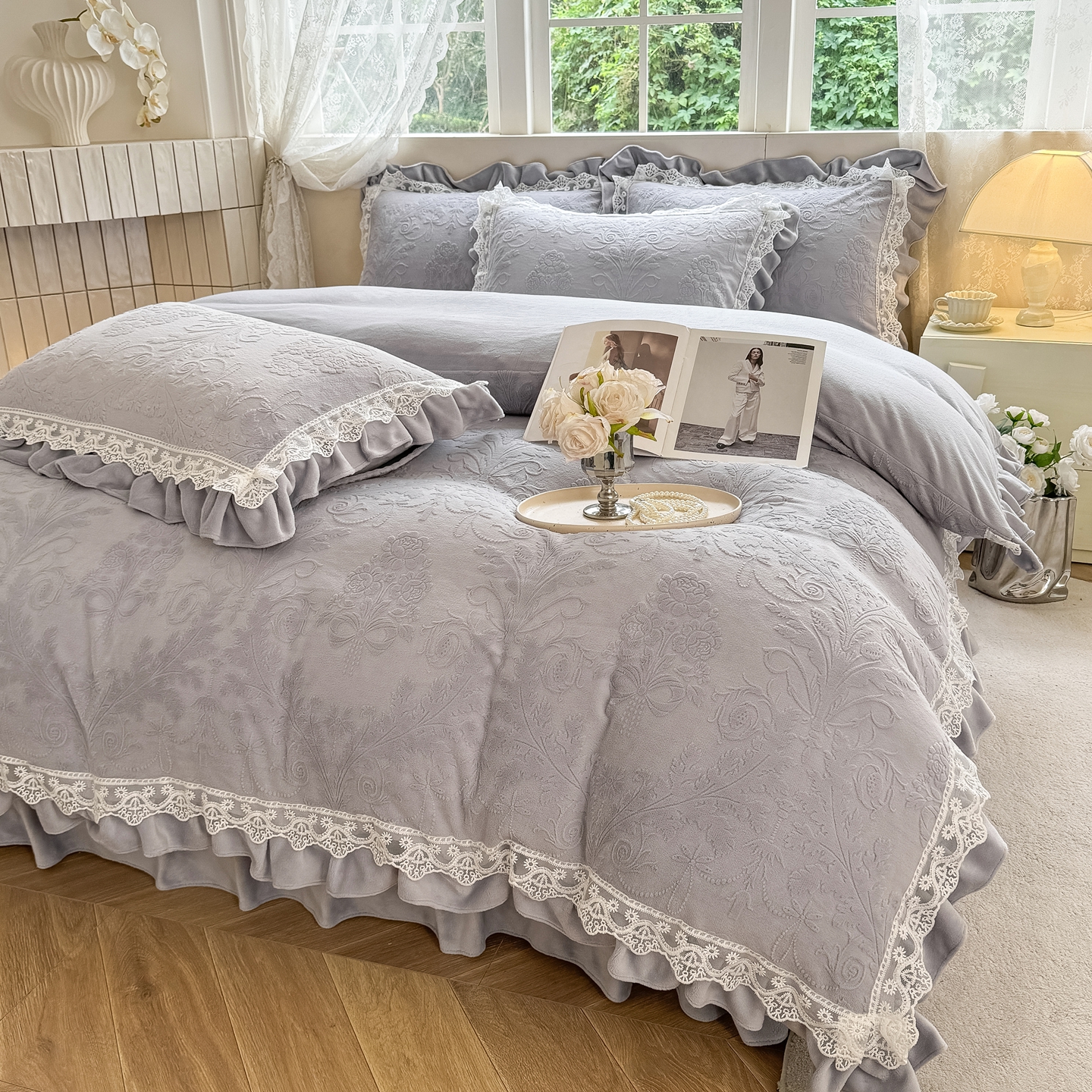 久久红 2025新款高克重牛奶绒四件套系列 紫灰