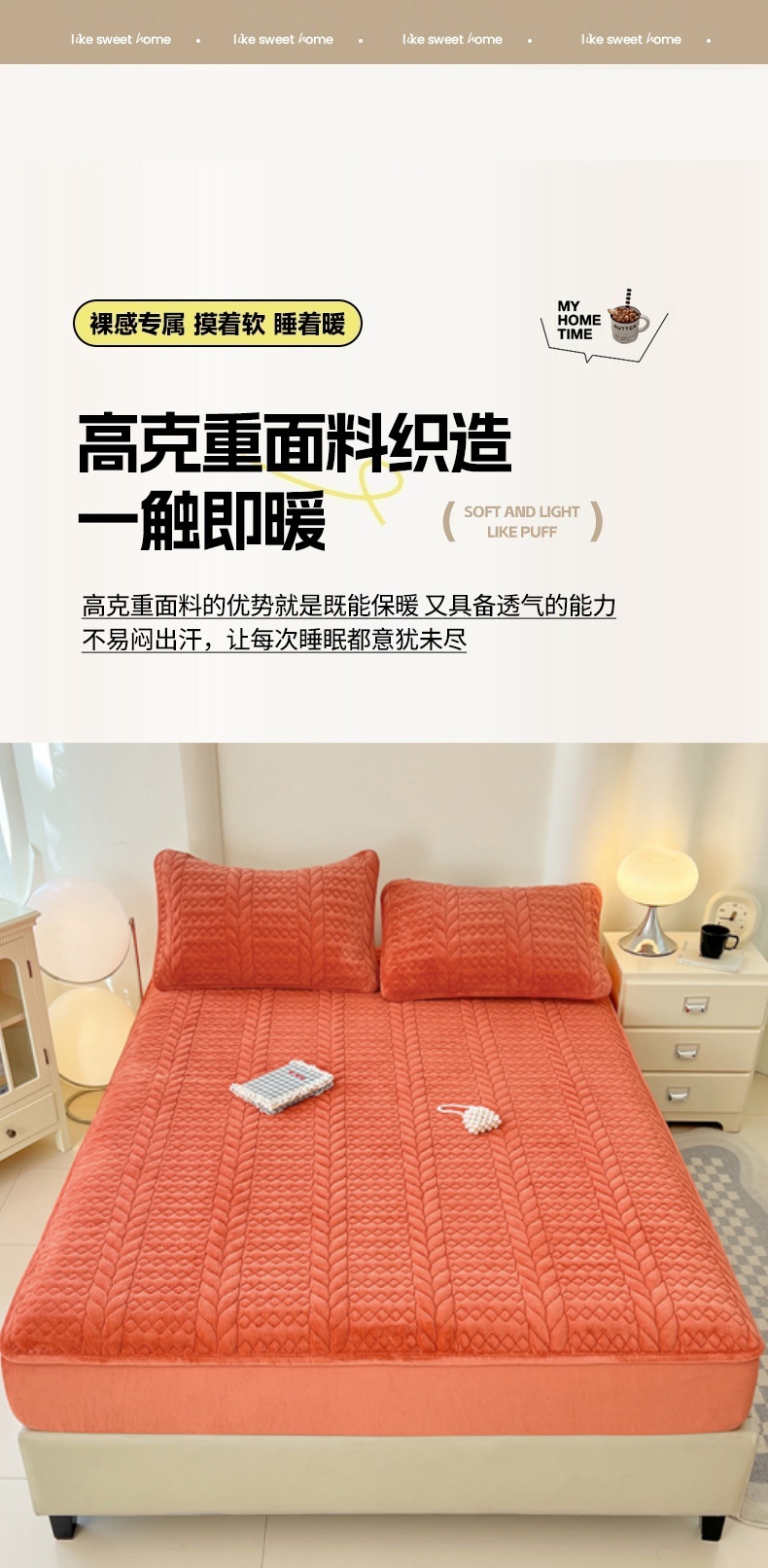 当前位置: 91家纺网 > 商品网购 > 床上用品 > 床笠 > 圣比熊 2025新款A类牛奶绒夹棉床笠床单床盖床罩床护垫床垫保护罩三件套-轻奢 轻奢款-活力橘