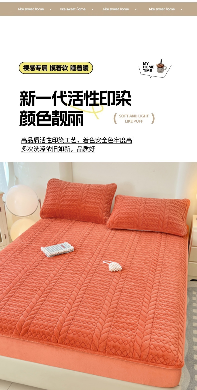 圣比熊 2025新款A类牛奶绒夹棉床笠床单床盖床罩床护垫床垫保护罩三件套-轻奢 轻奢款-活力橘