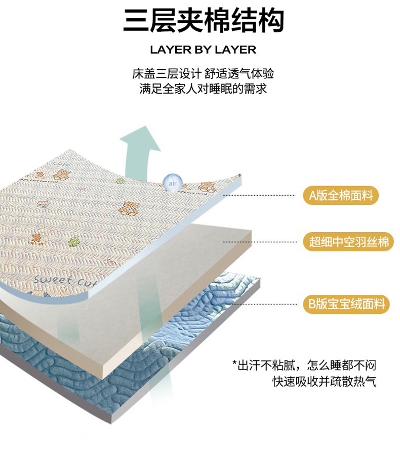商品名称:布兰鸟家纺【1店】 2025新款全棉宝宝绒夹棉床盖单品床盖床盖单件(四季换面用) 梦迪乐园