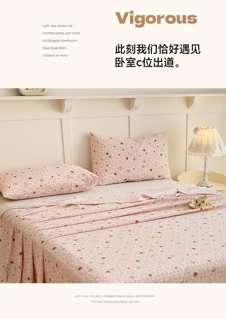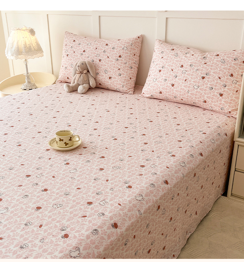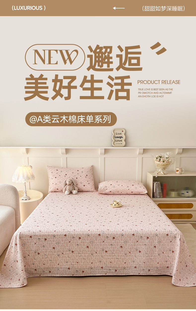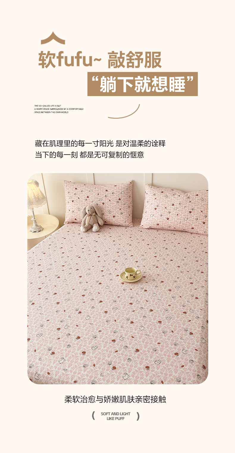 • 91家纺网 家纺一手货源 找家纺 麦乐迪 2025新款A类云感双层纱印花床单 月野兔-粉