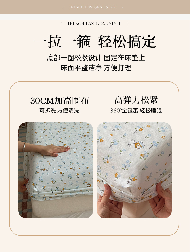 • 91家纺网 家纺一手货源 找家纺 麦乐迪 2025新款A类云感双层纱印花床笠 花语白兔
