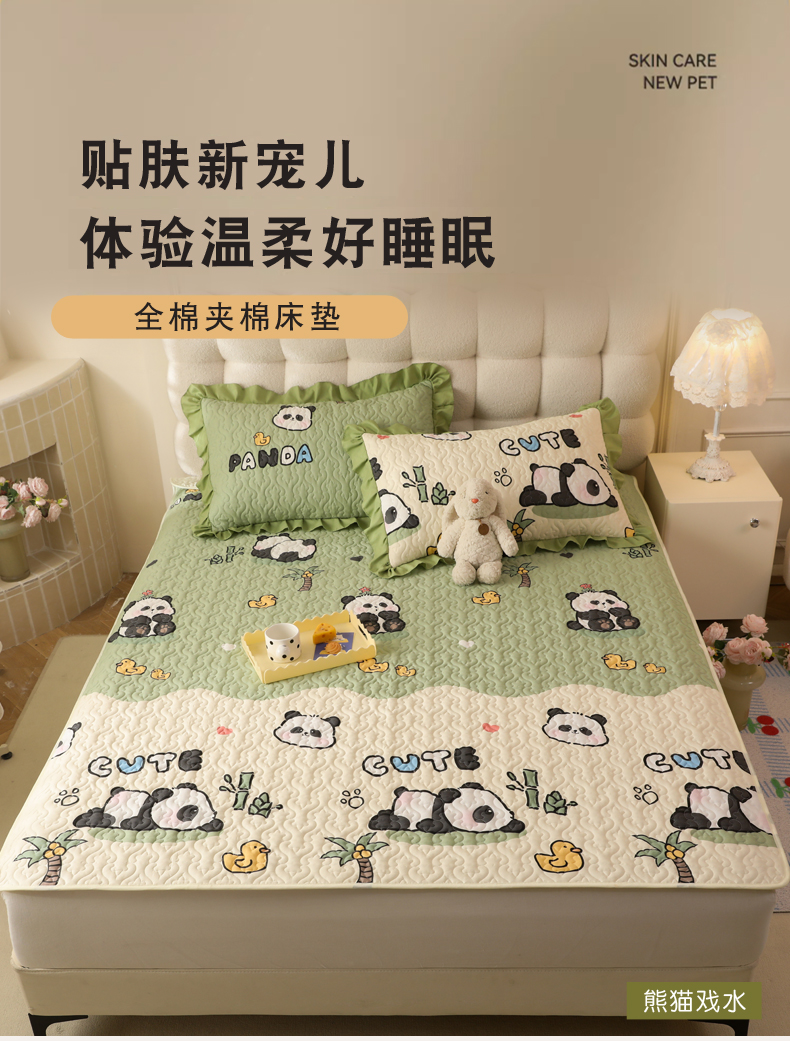 当前位置: 91家纺网 > 商品网购 > 床上用品 > 凉席 > 其他凉席 > 美达家纺 新款A类全棉夹棉防滑可机洗床盖全棉直边软席款(可定制)熊猫戏水