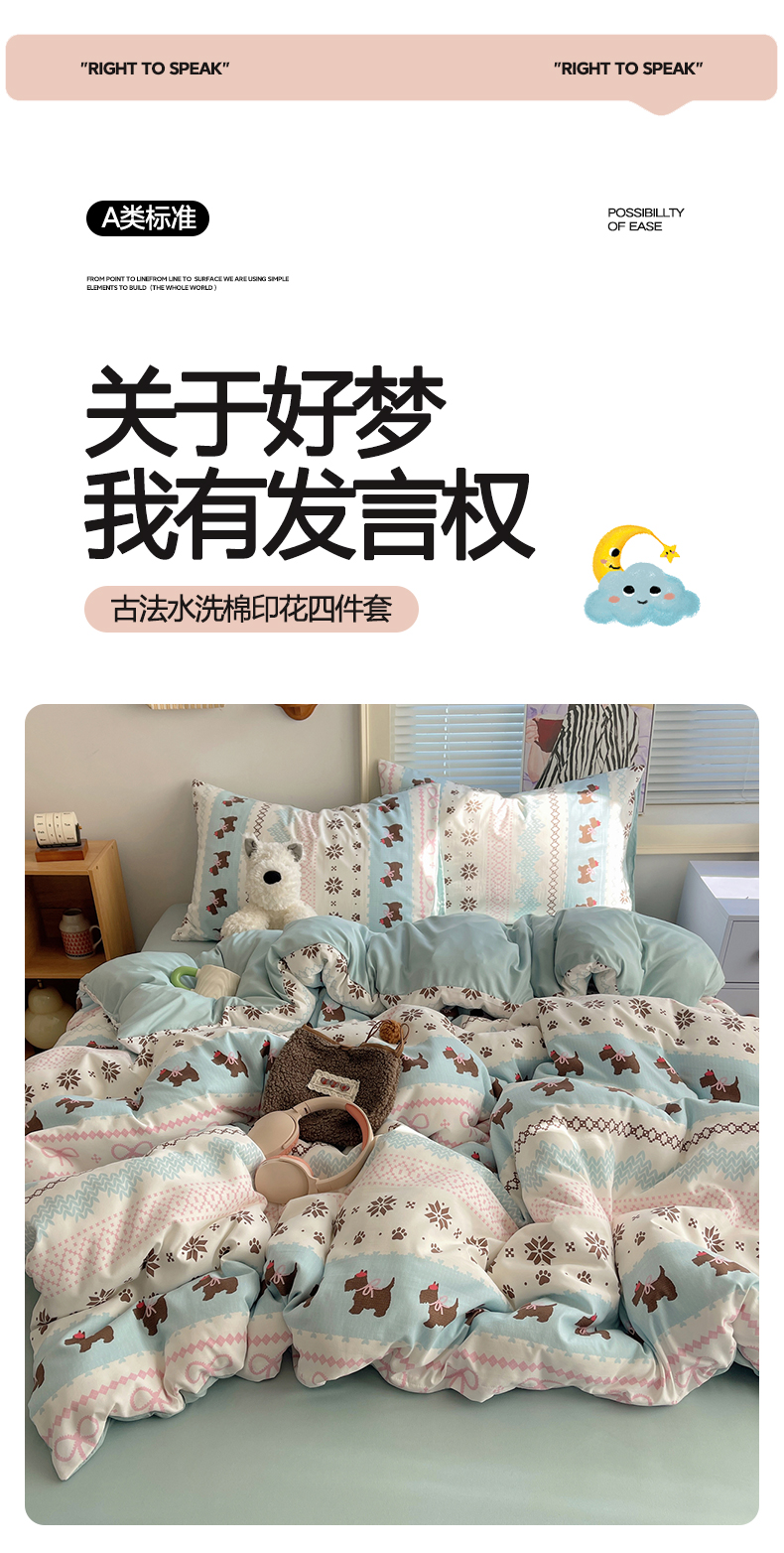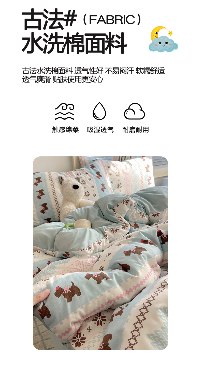 当前位置: 91家纺网 > 商品网购 > 床品套件 > 四件套 > 水洗棉四件套 > 星禾优选 2025新款A类仿棉四件套古法水洗棉小清新印花四件套单被套系列(提供买家秀) 小狗脆脆鲨