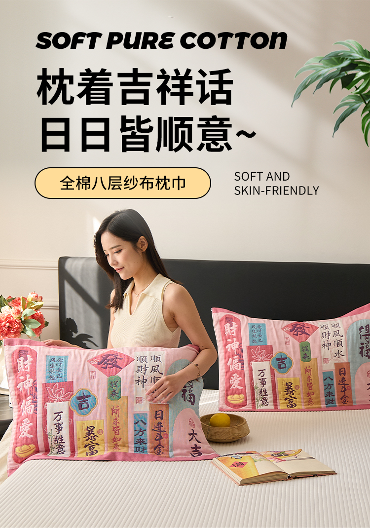 商品名称:沐瑟家纺 2025新款纯棉纱布枕巾八层枕巾-發 暴富