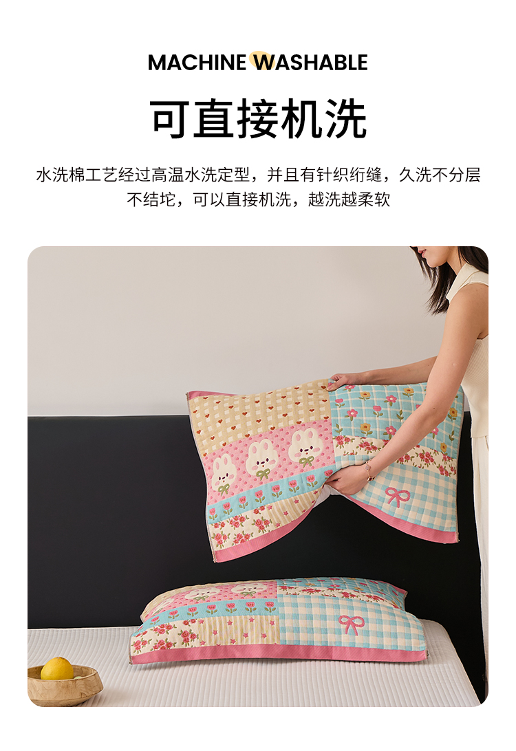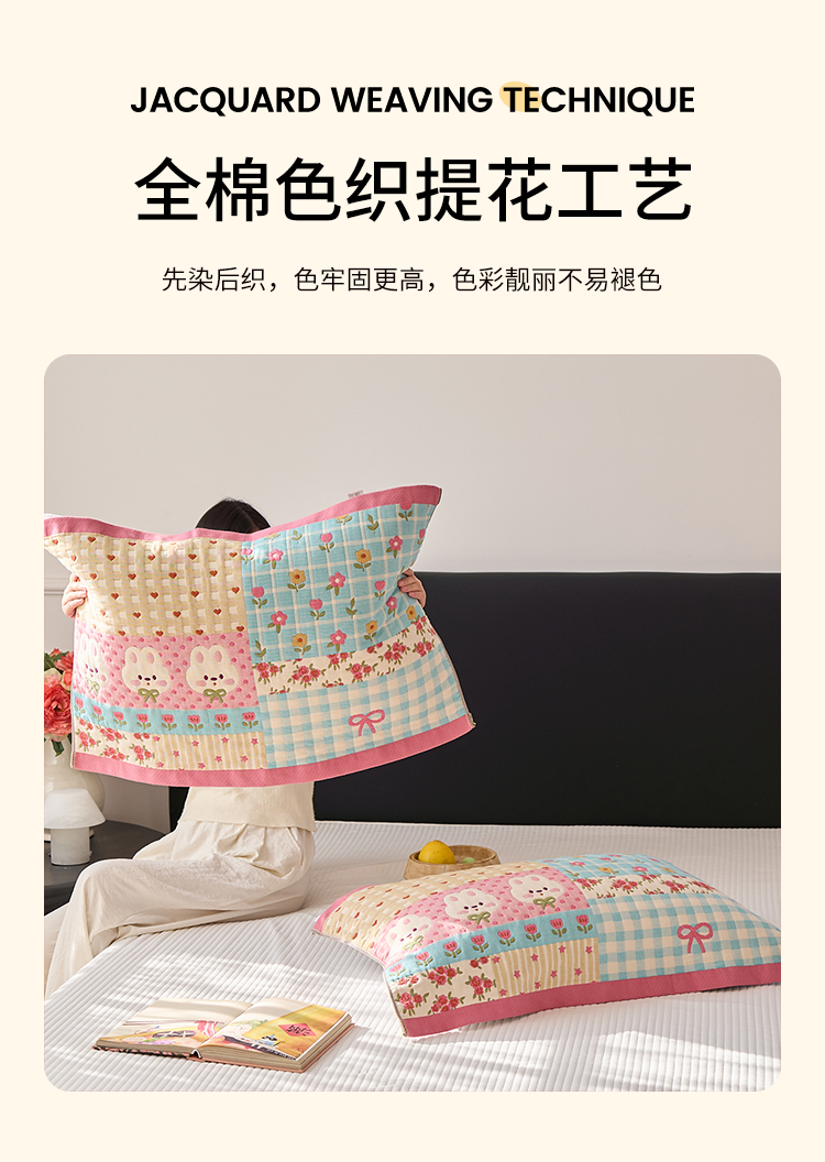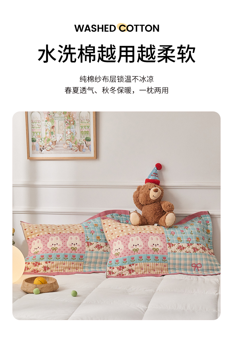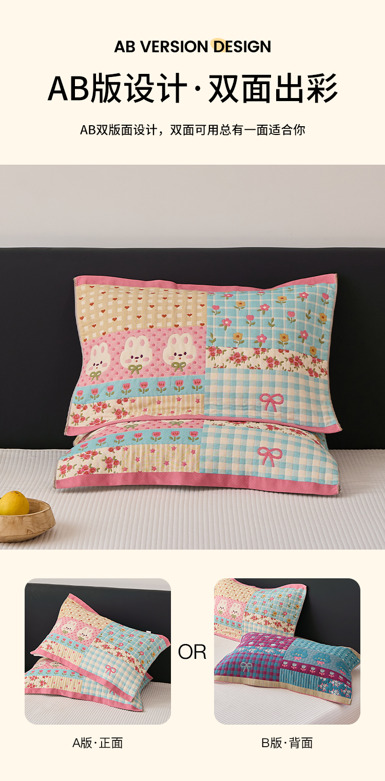 沐瑟家纺 2025新款纯棉纱布枕巾八层枕巾-發 小花兔