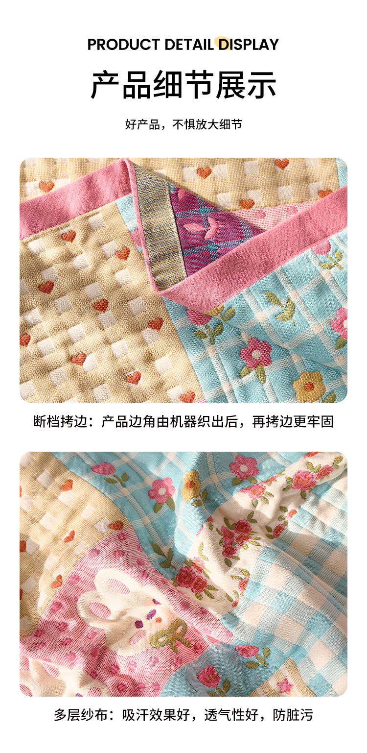 (总)沐瑟家纺 2026新款全棉四层纱布床盖-星星和心情系列,心情-粉色,心情-灰蓝,心情-卡其,星星-黄色,星星-灰色,星星-蓝色,星星-紫色,组合