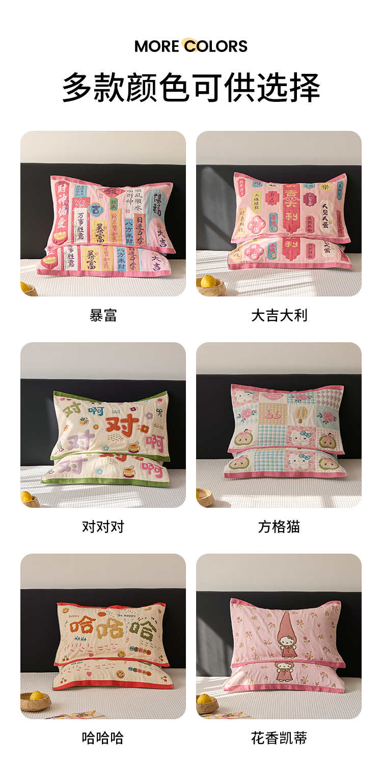 (总)沐瑟家纺 2026新款亲肤舒适全棉四层纱布枕巾-星星和心情系列,心情-粉色,心情-灰蓝,心情-卡其,星星-黄色,星星-灰色,星星-蓝色,星星-紫色,组合图仅做展示不可下单