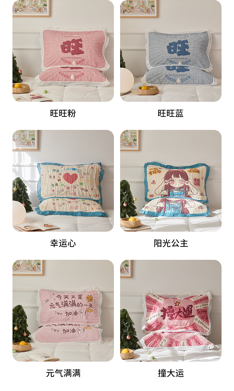 沐瑟家纺 2025新款花边枕巾 爱自己
