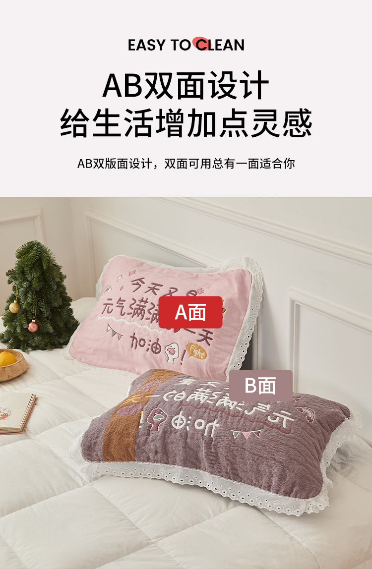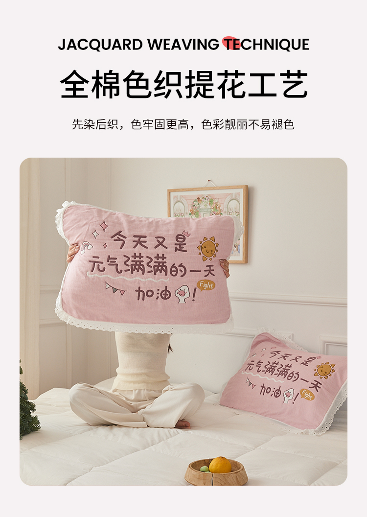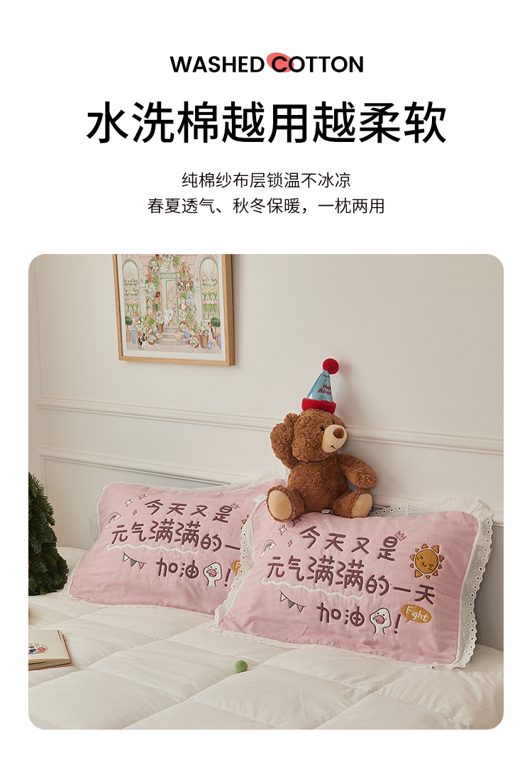 沐瑟家纺 2025新款花边枕巾 旺旺粉
