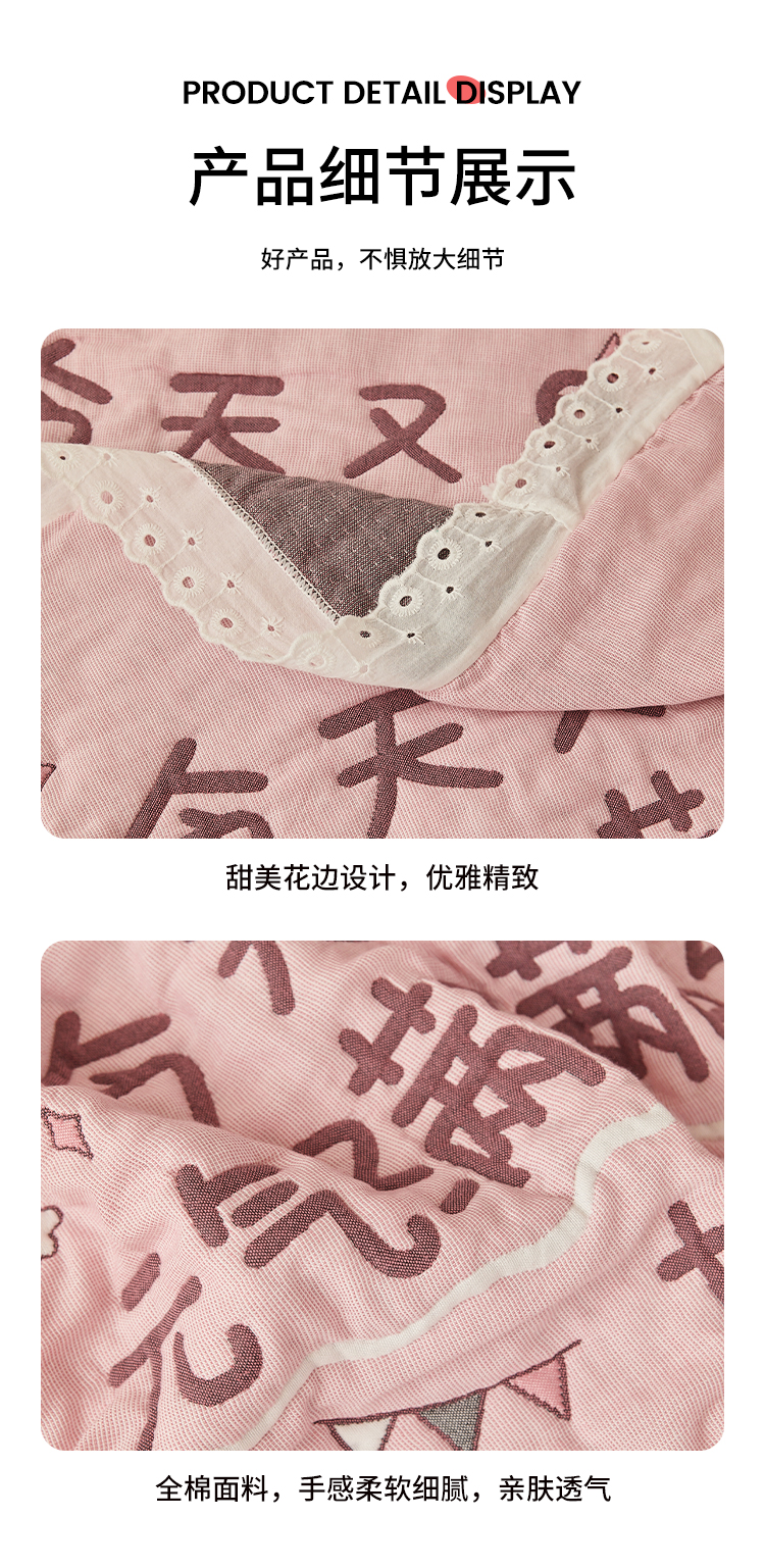 (总)沐瑟家纺 2026新款全棉四层纱布床盖-星星和心情系列,心情-粉色,心情-灰蓝,心情-卡其,星星-黄色,星星-灰色,星星-蓝色,星星-紫色,组合